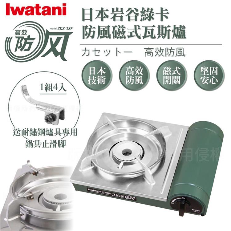 【Iwatani岩谷】綠卡高效防風型磁式瓦斯爐-2.8kW-搭贈4入耐鏽止滑腳 (ZKZ-18F+4入ZA-001)