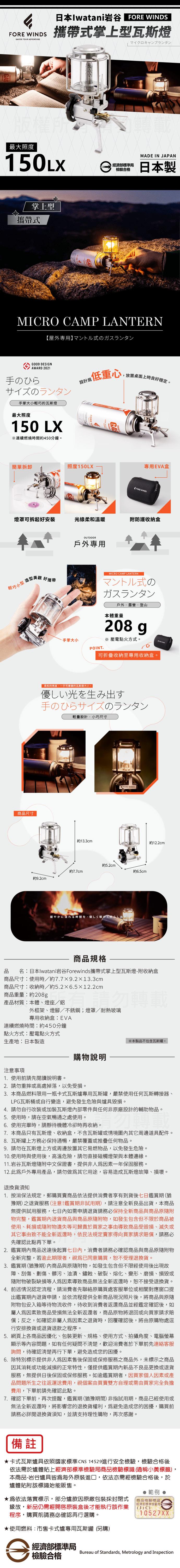 【Iwatani岩谷】Forewinds攜帶式掌上型瓦斯燈-附收納盒 (FW-ML01)