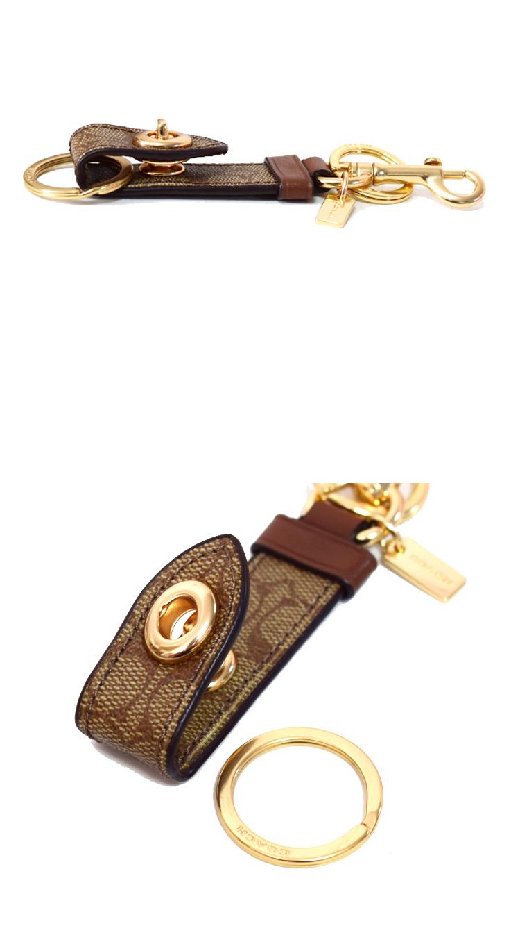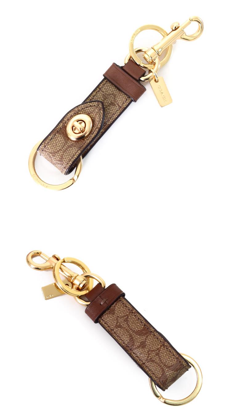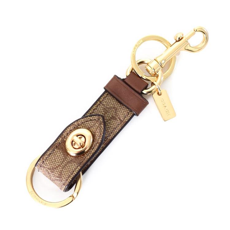 COACH 滿版LOGO皮革雙環鑰匙圈-卡其駝