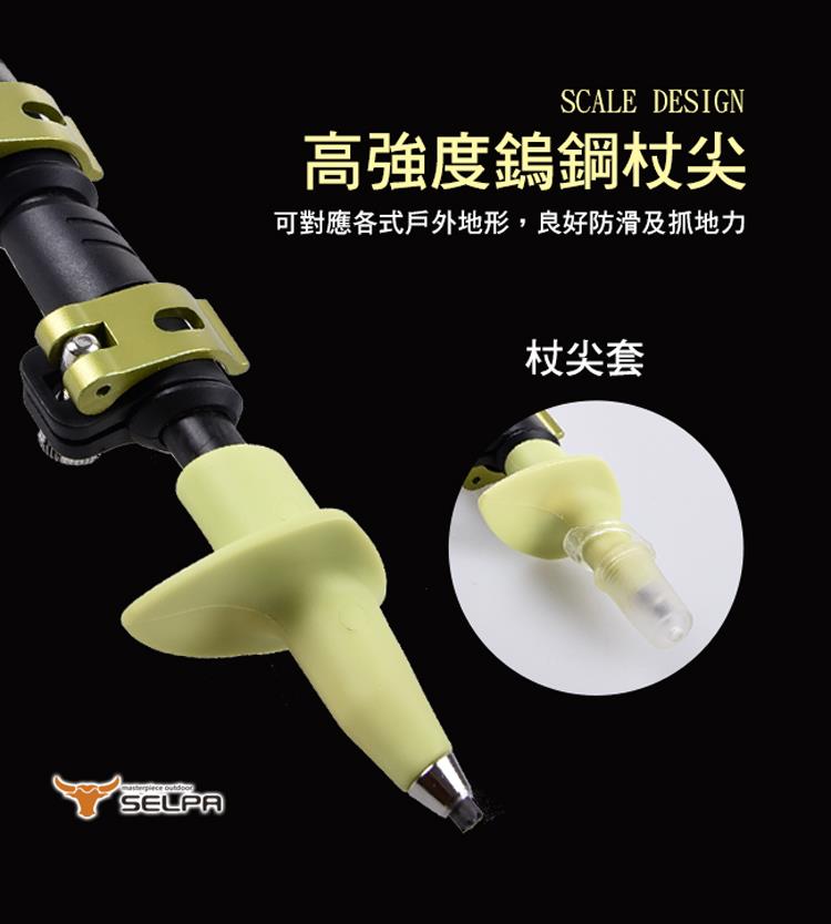 耐磨、強韌、耐腐蝕,特殊快速壓扣上鎖設計,高強度鎢鈷鈦合金杖尖