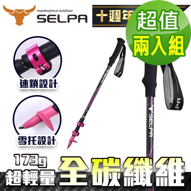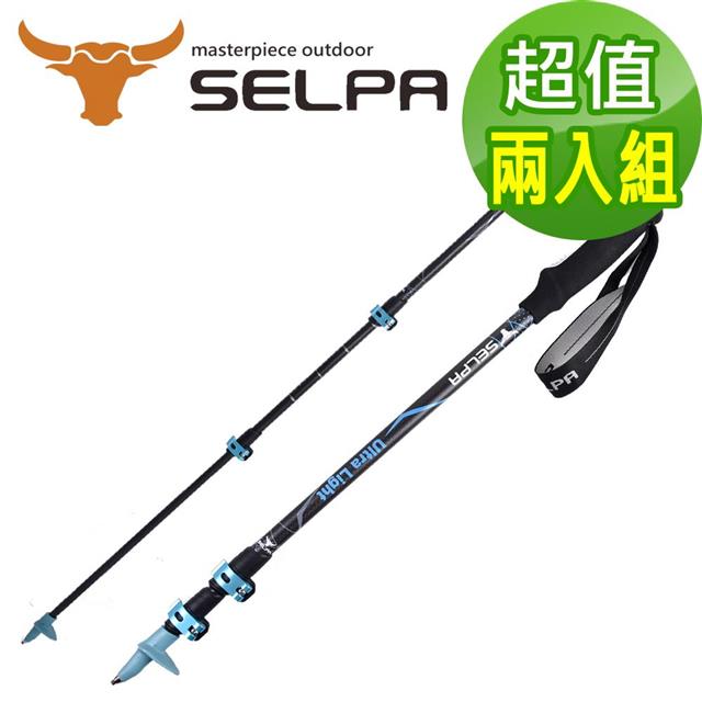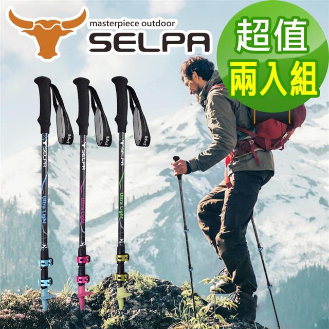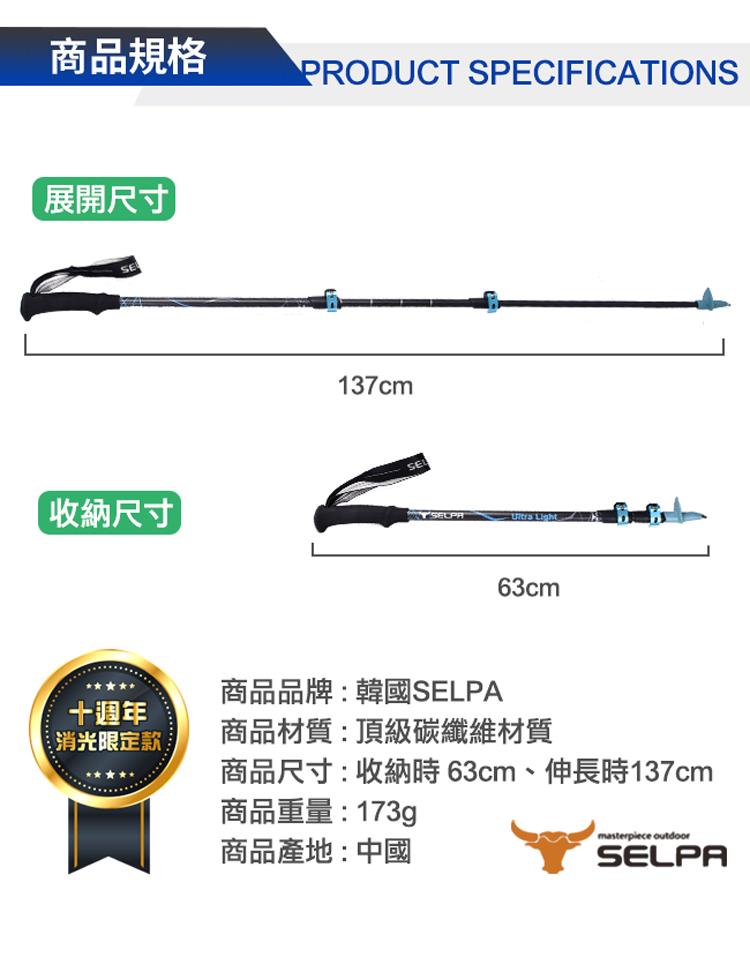【韓國SELPA】凜淬碳纖維三節式外鎖登山杖/三色任選(超值兩入組)