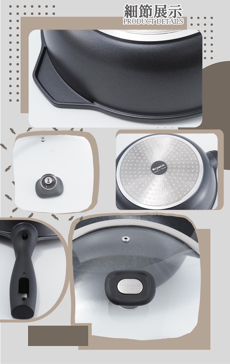 台灣製造品質安心,通過SGS檢測品質安心,採用最新合金精工製作,傳熱快且均勻,採用礦岩不沾塗層耐用不沾處理,達到不沾鍋身抗黏OK,不易粘黏食材,適用圓角金屬鐵鏟,煎煮食材只需少許油易清洗 ,省油,省瓦斯,深+寬型導流設計,料理食物好鍋具,超厚導磁適用IH電磁爐、瓦斯爐、電爐、紅外線爐、鹵素爐,不挑爐的好鍋。