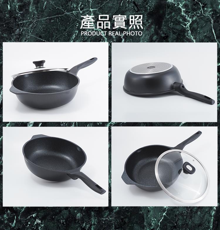 ▲最新合金精工製作 ▲採用礦岩不沾塗層 ▲適用圓角金屬鐵鏟 ▲深型化設計料理食物好幫手 ▲適用IH電磁爐不挑爐的好鍋