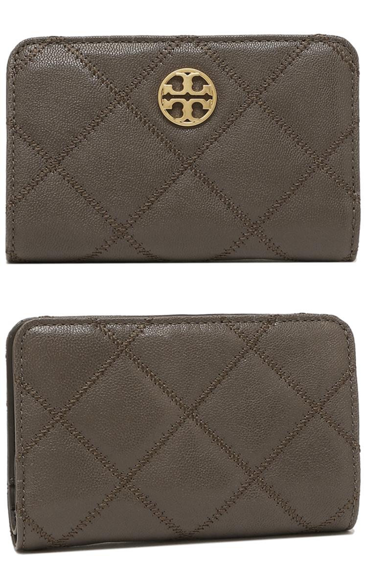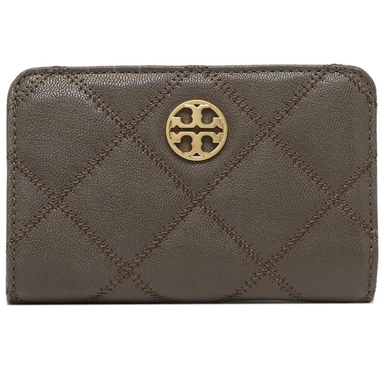 TORY BURCH 菱格紋皮格拉鍊中夾-岩灰