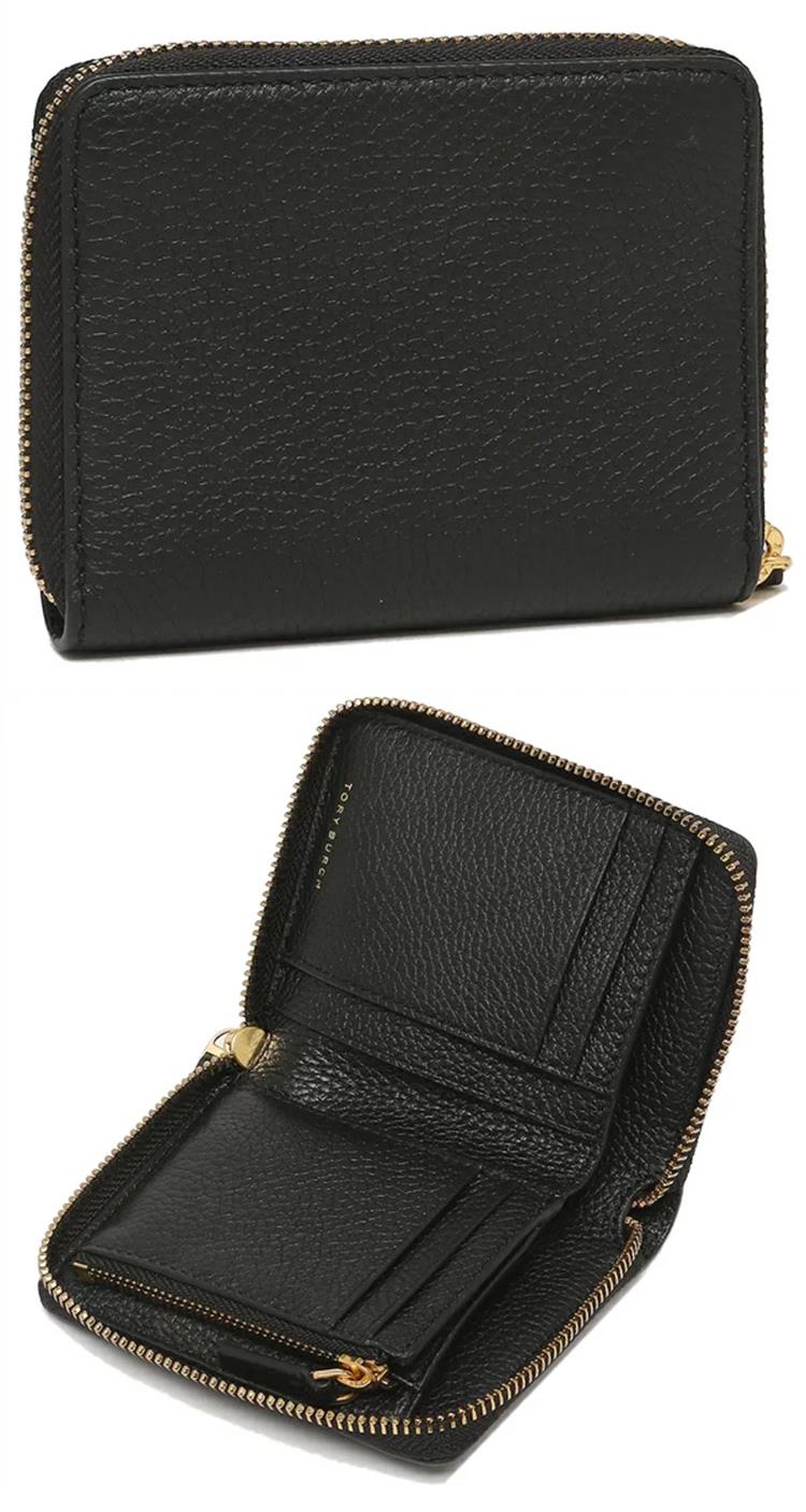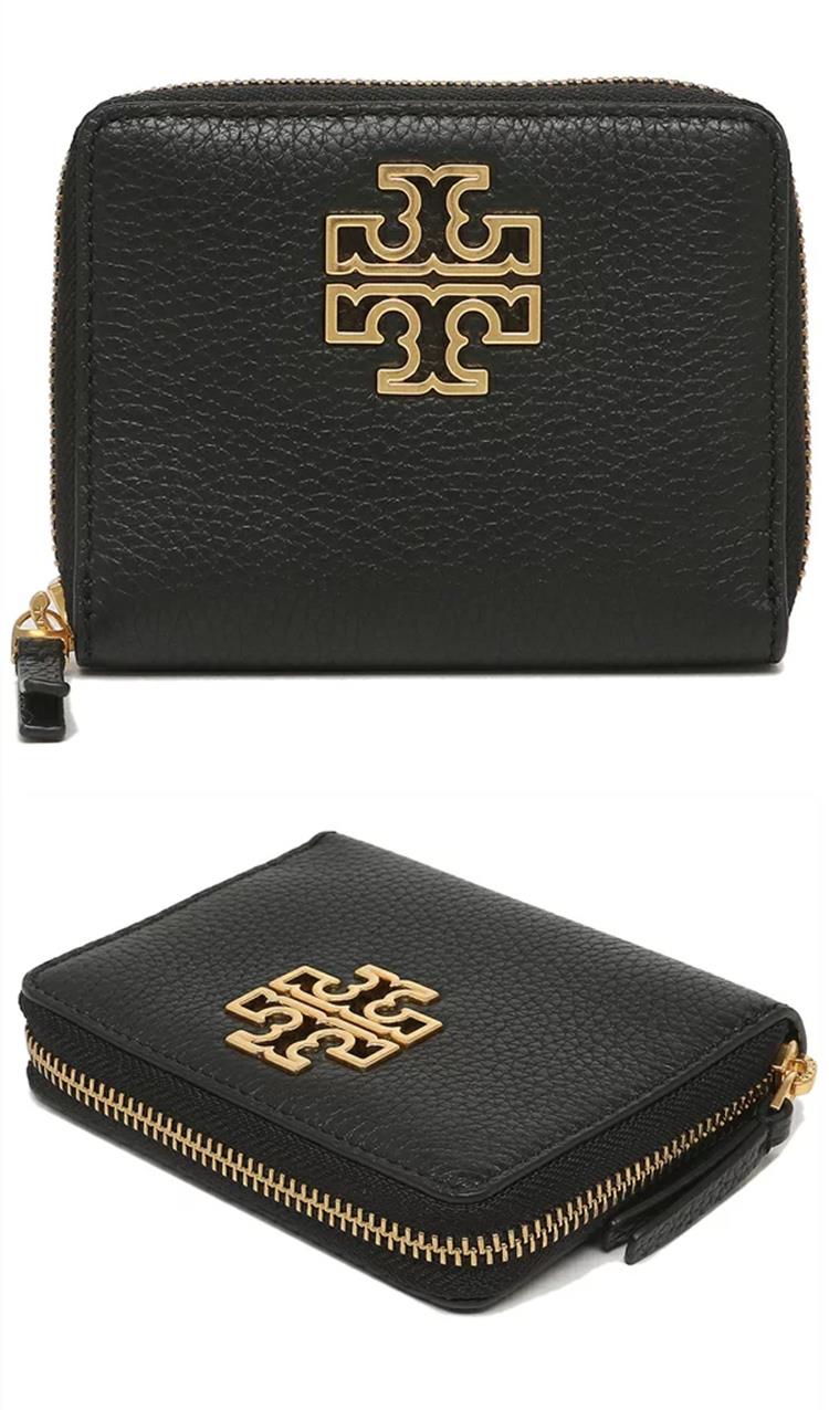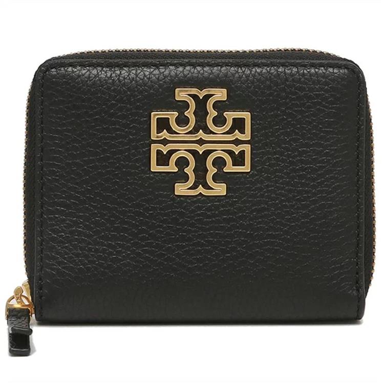 TORY BURCH 雙T-LOGO皮革拉鍊短夾-黑