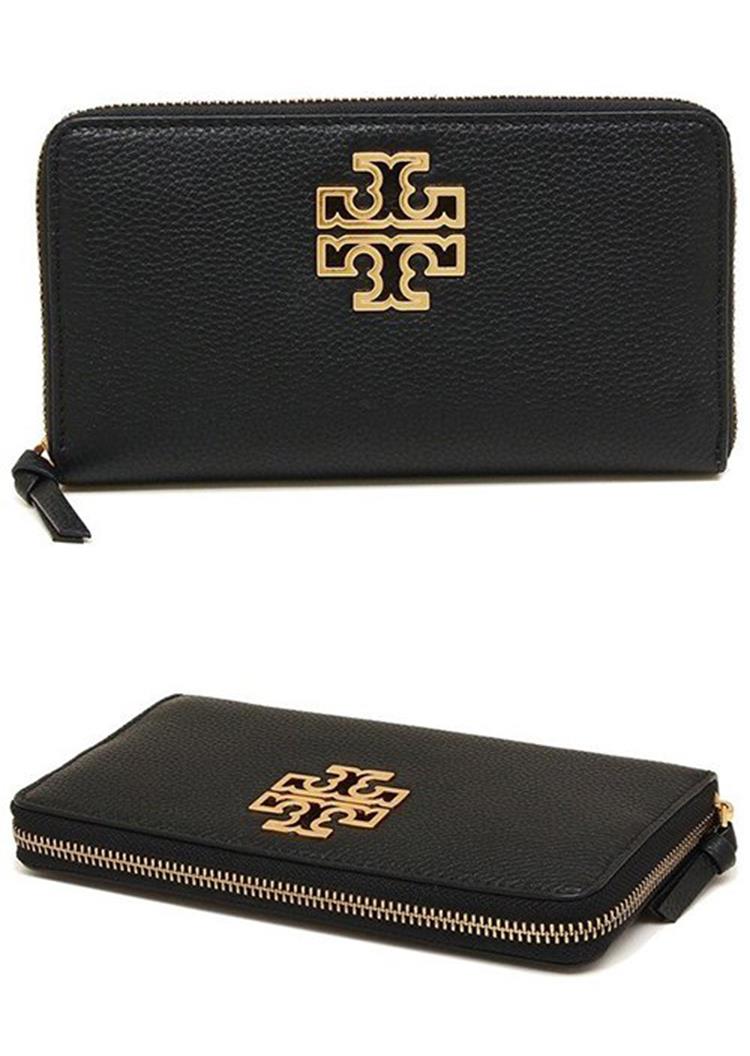 TORY BURCH 雙T-LOGO皮格拉鍊長夾-黑