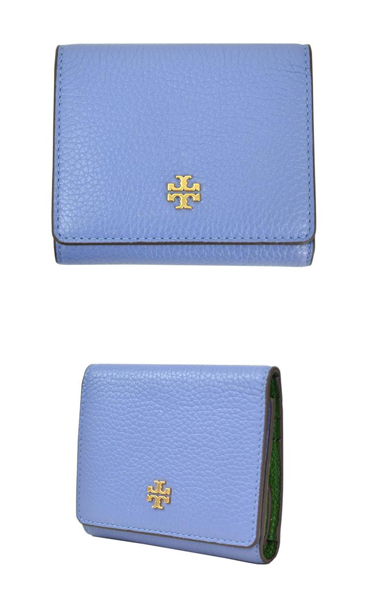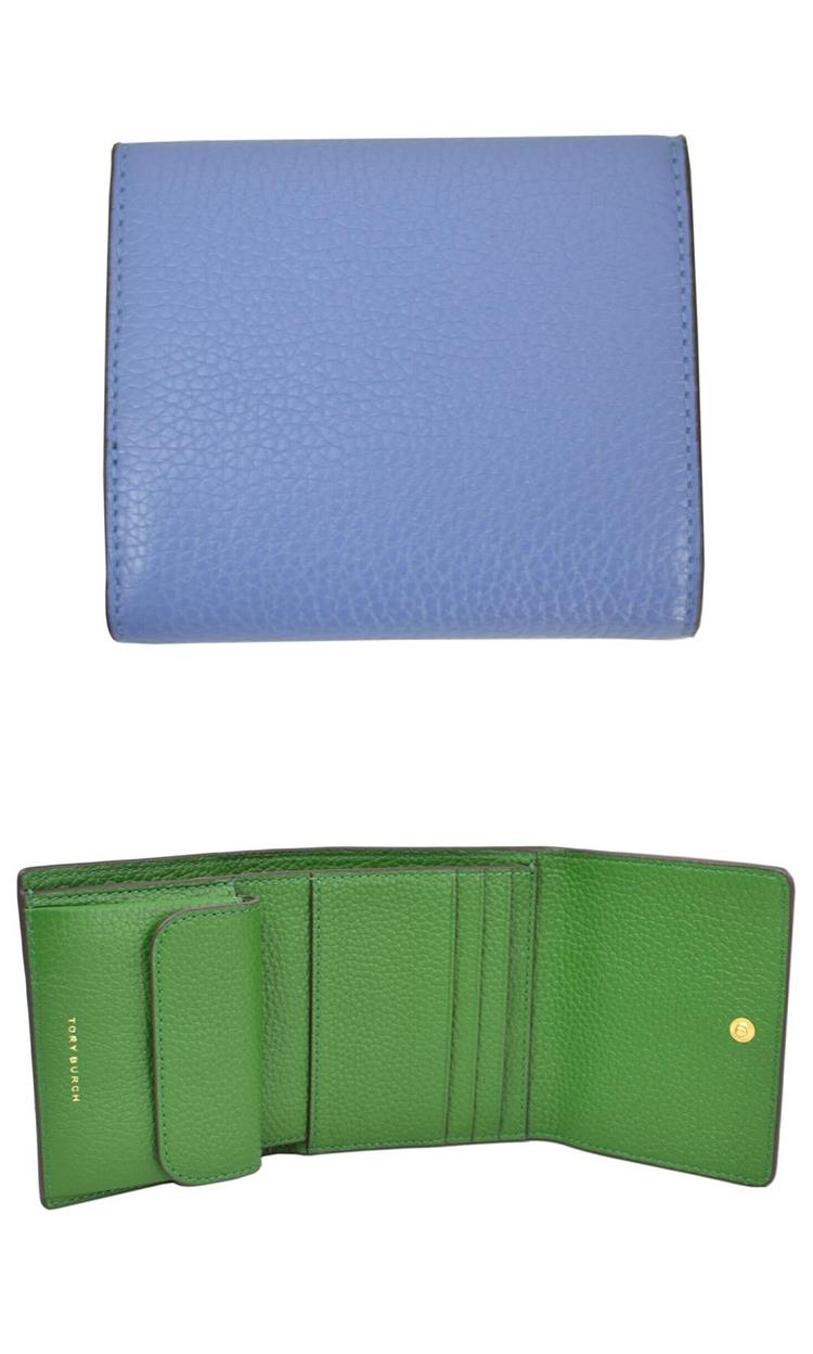 TORY BURCH 撞色皮革三折短夾-天空藍