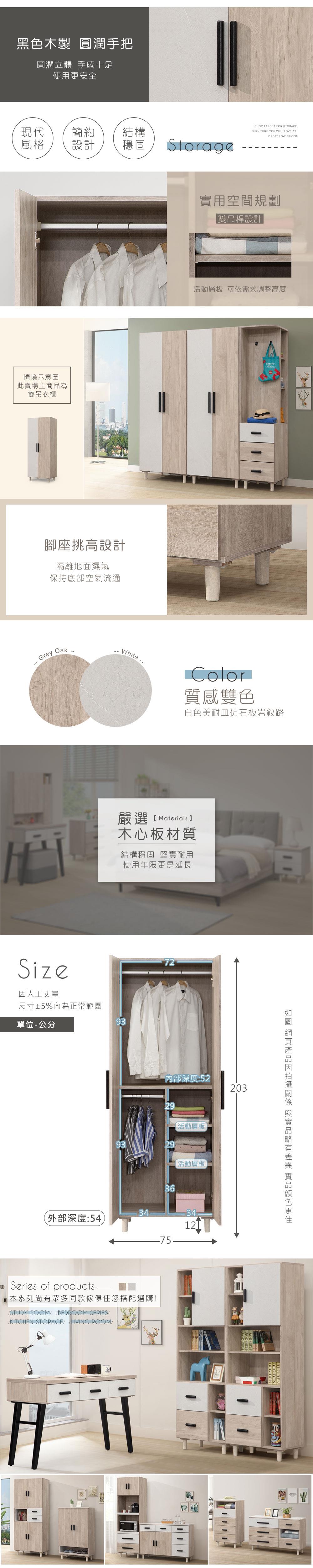 YoStyle 梅姬2.5尺雙吊衣櫃