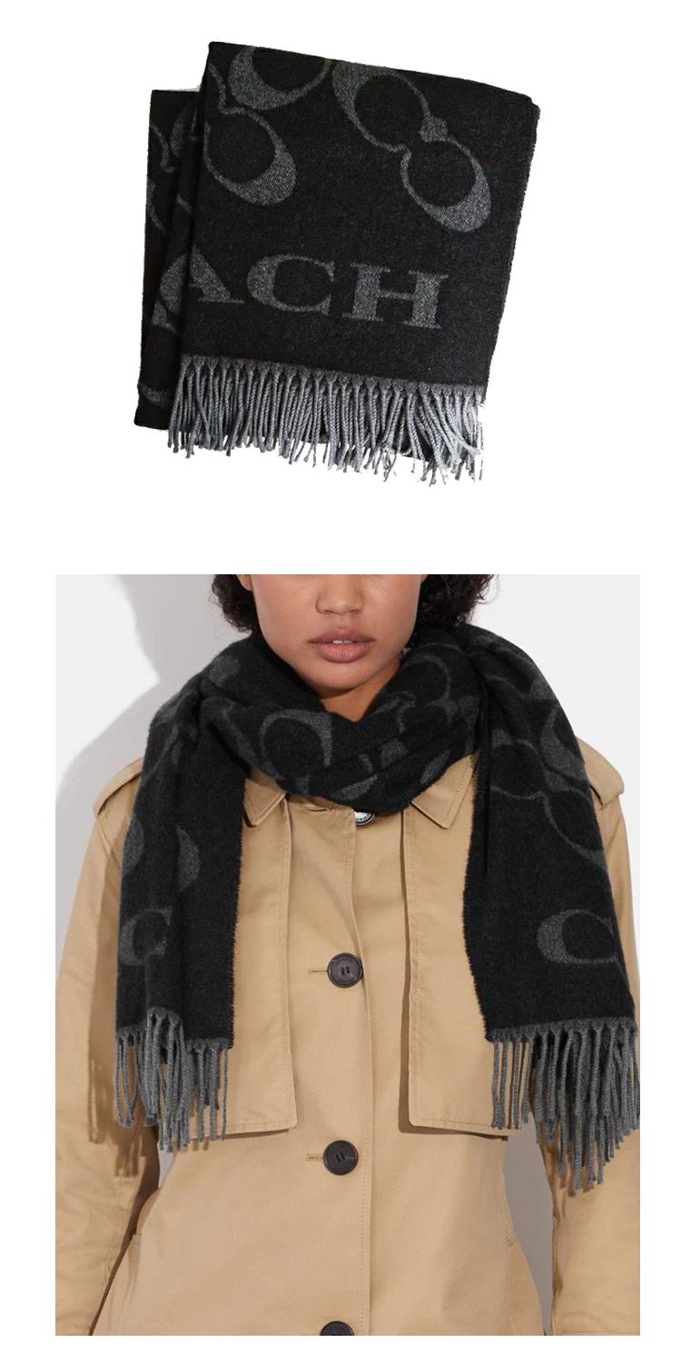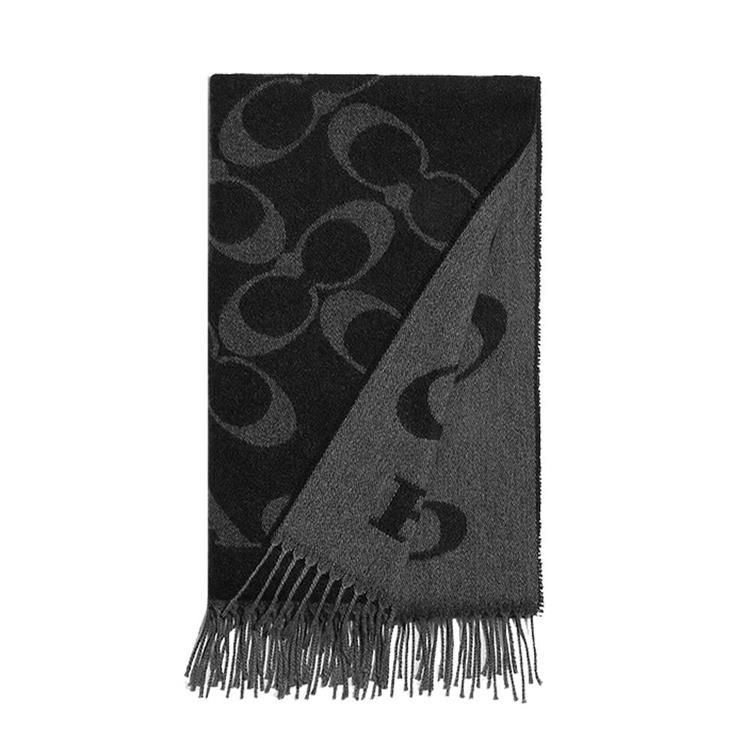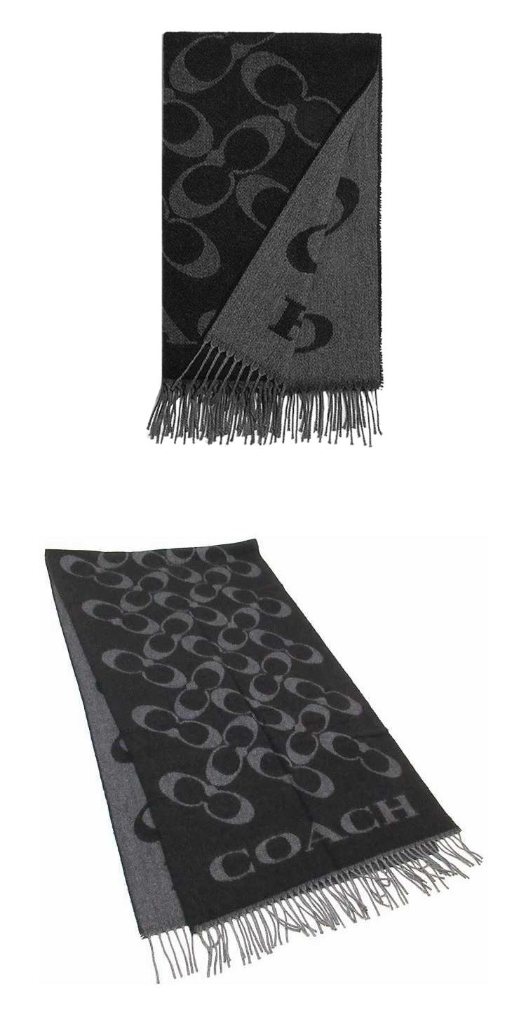 COACH 滿版LOGO羊毛圍巾-黑灰