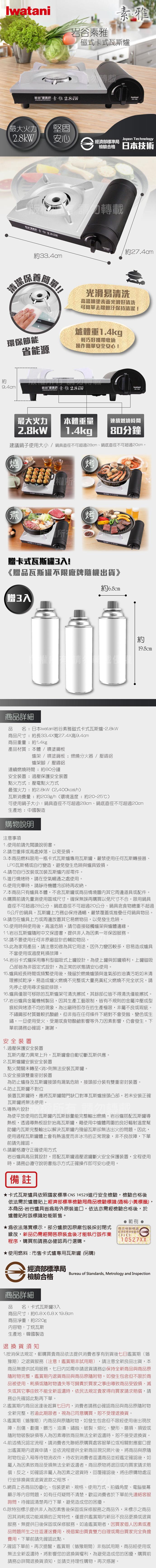 【Iwatani岩谷】素雅磁式卡式瓦斯爐-2.8kW-搭贈3入瓦斯罐 (ZB-19M+瓦斯罐3入)