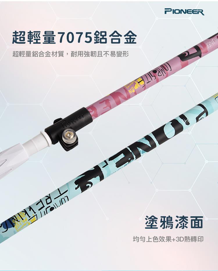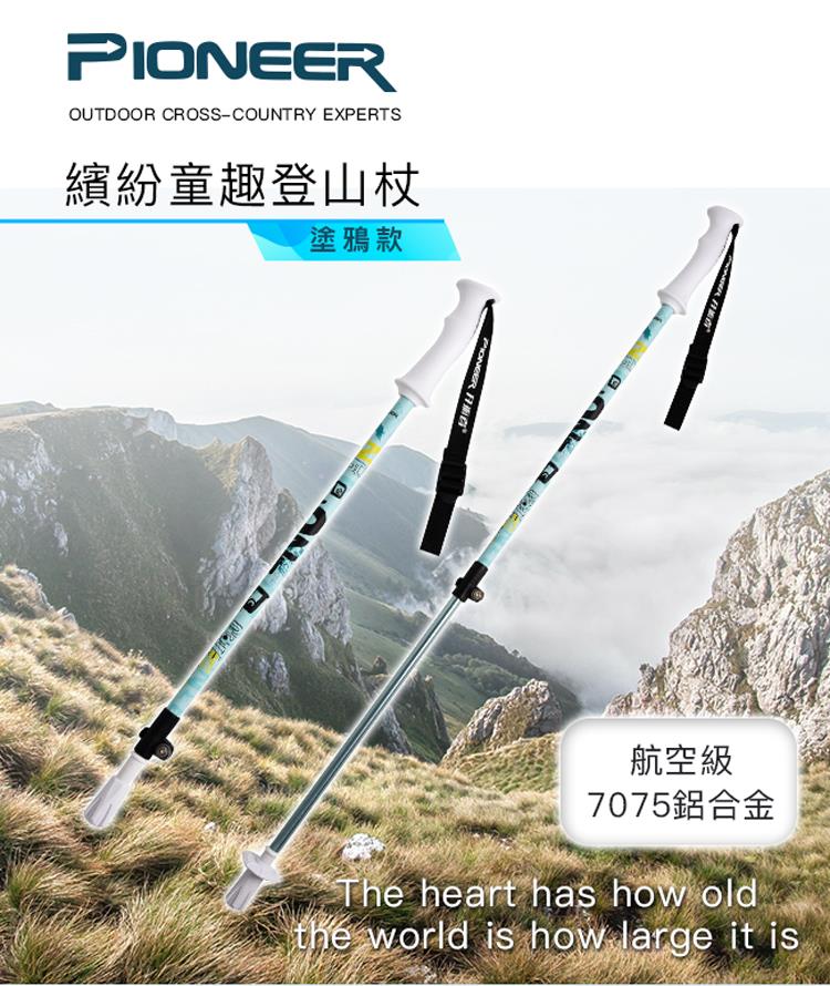 【開拓者 Pioneer】7075鋁合金 繽紛童趣登山杖 塗鴉款 外鎖登山杖(兩色任選)