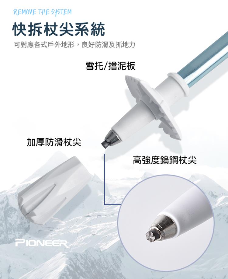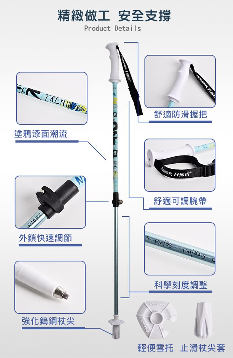 ▲防滑舒適握把設計 ▲安全鎖扣系統 ▲高強度鎢鋼杖尖