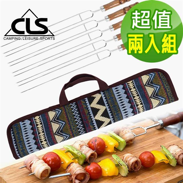 【韓國CLS】不鏽鋼烤肉叉超值五入組/烤肉/野餐/野炊/露營/登山(兩色任選)(超值兩入組)