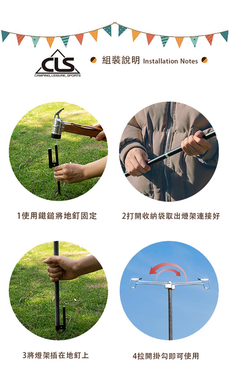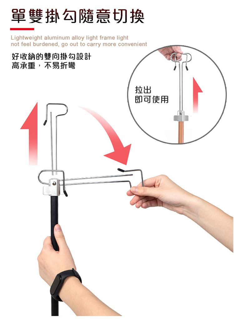 【韓國CLS】鋁合金雙掛勾燈架 免拆摺疊款/燈架/掛勾/露營/帳篷/置物架(兩色任選)