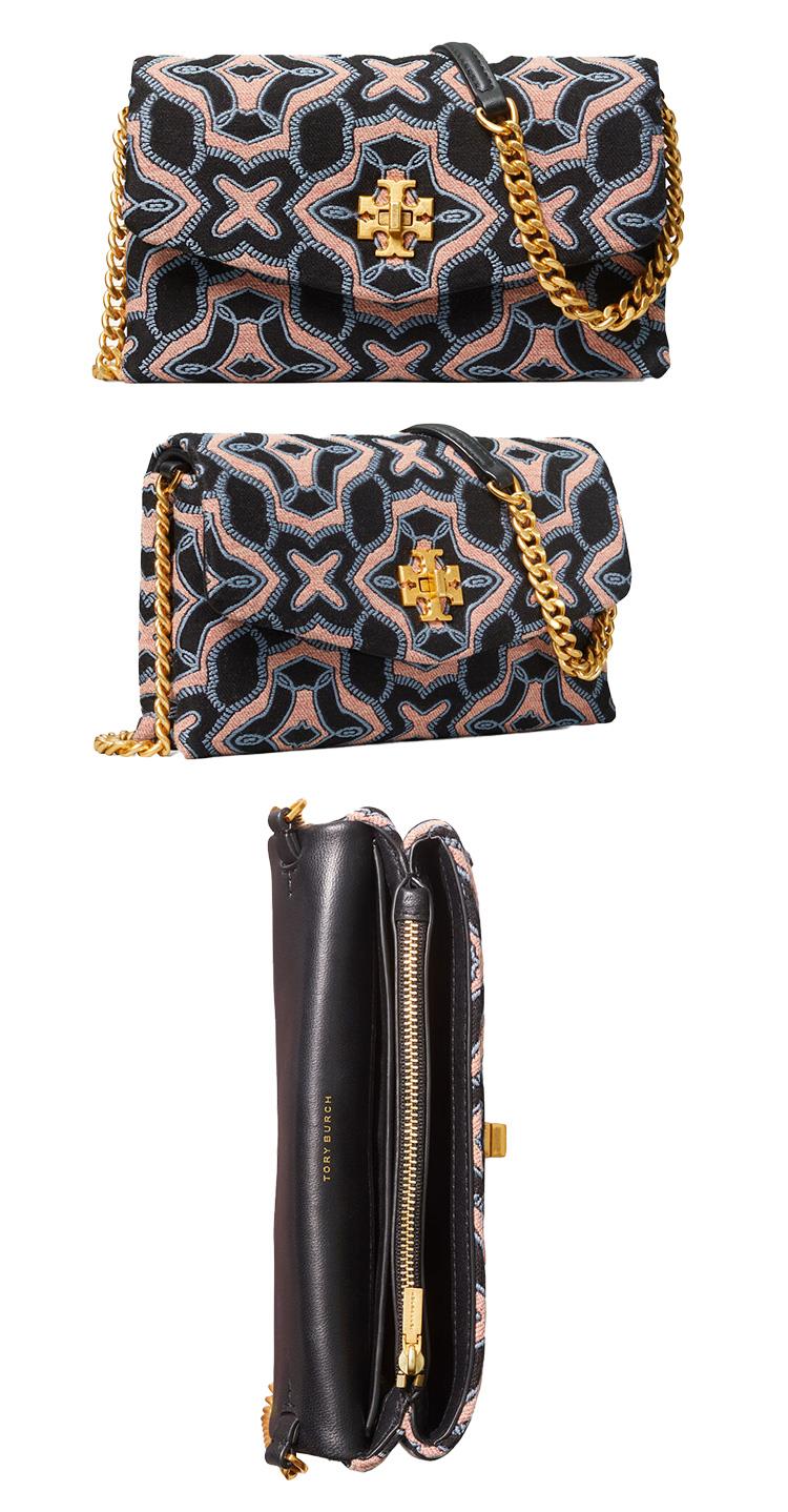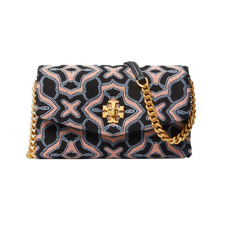 TORY BURCH 印花織布斜背包-黑底粉彩