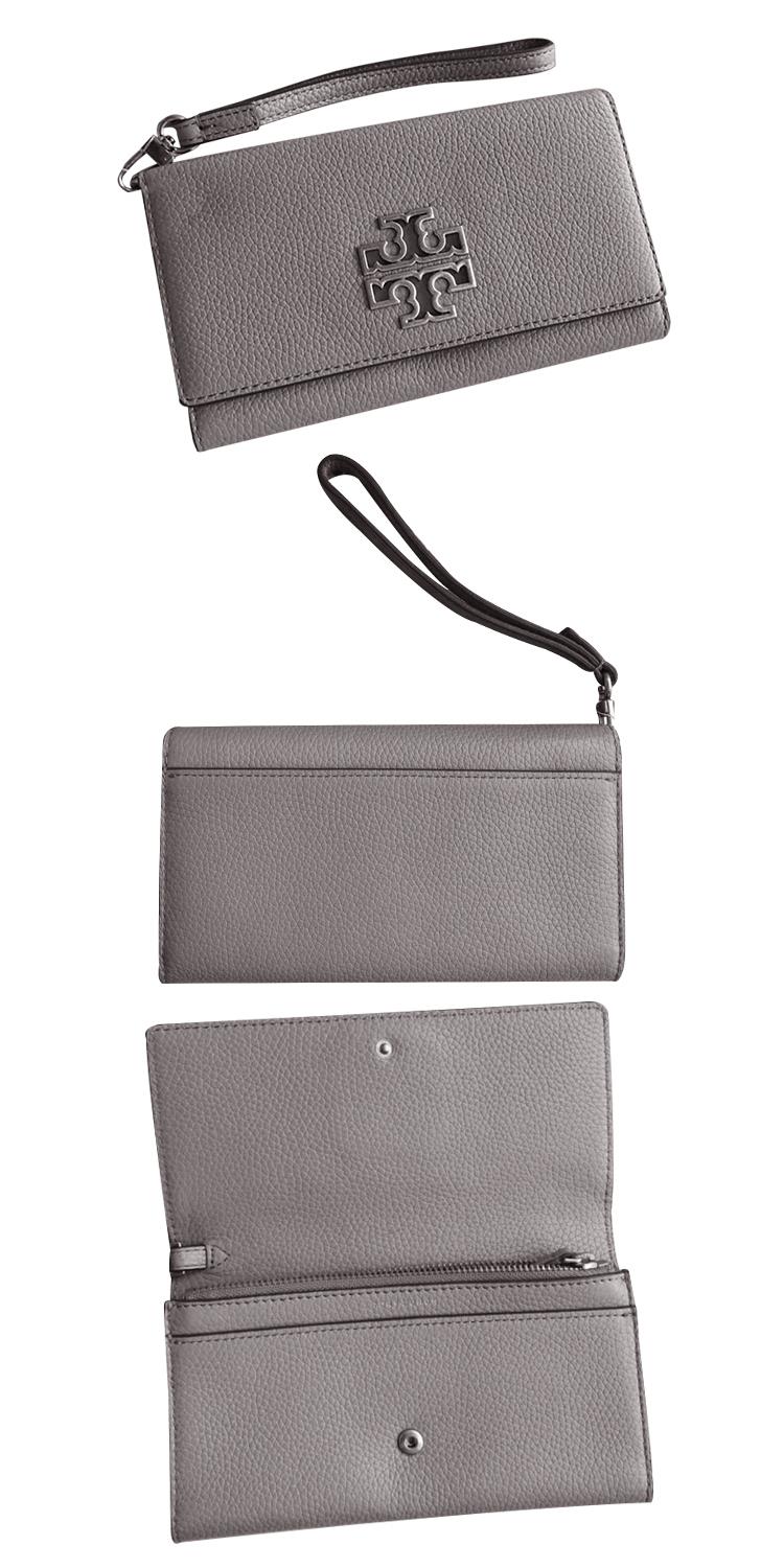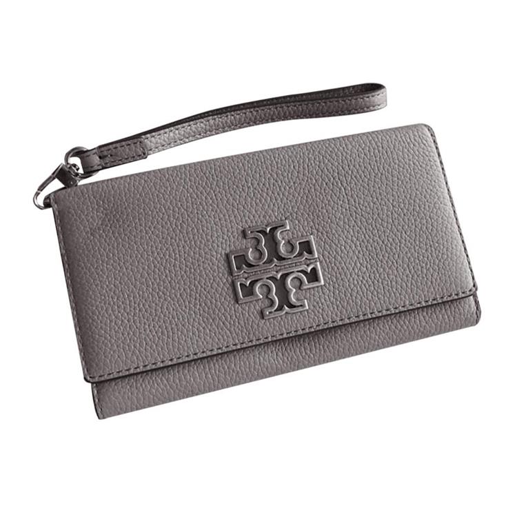 TORY BURCH 素面皮革手拿包-灰