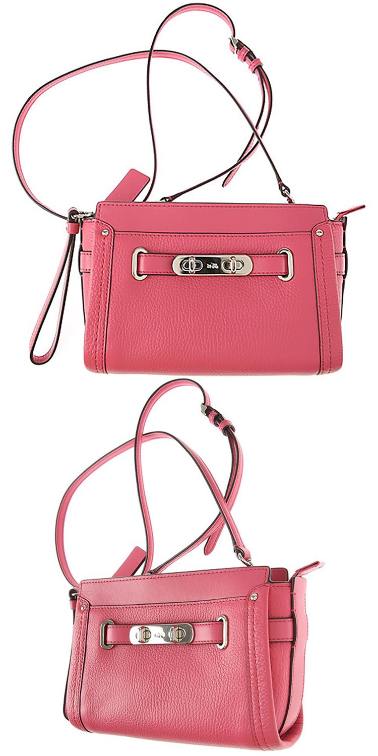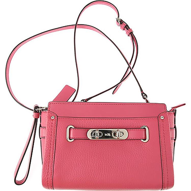 COACH 荔枝紋皮革手拿斜背二用包-桃粉色