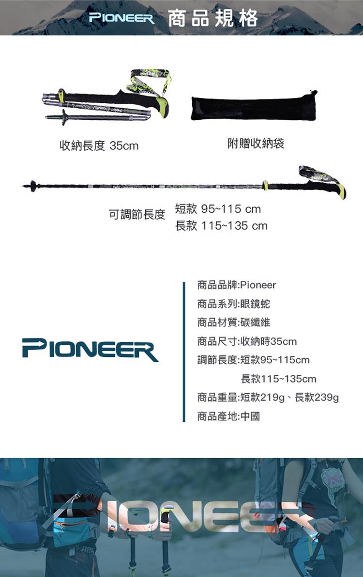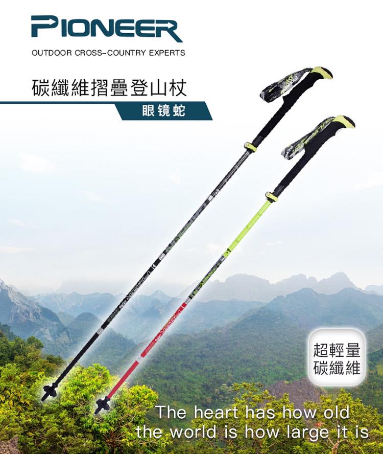 【開拓者 Pioneer】眼鏡蛇 碳纖維摺疊外鎖登山杖 摺疊登山杖(兩款任選)
