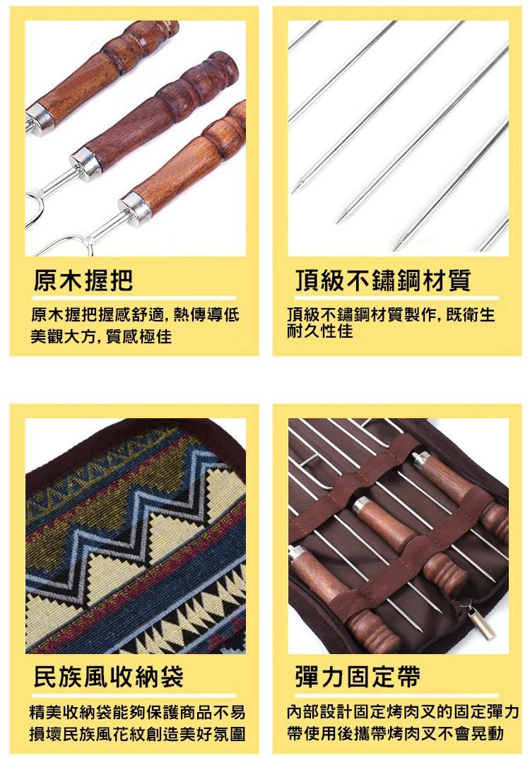 商品組合:烤肉雙叉x3烤肉單叉x4,精美收納袋x1