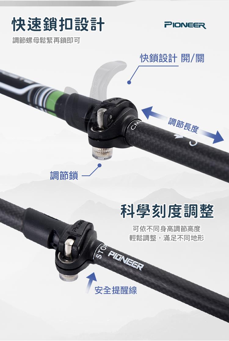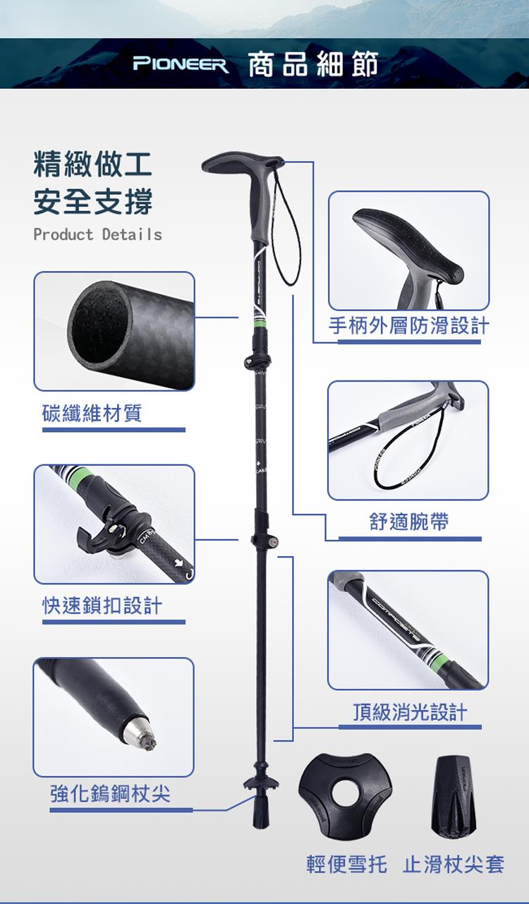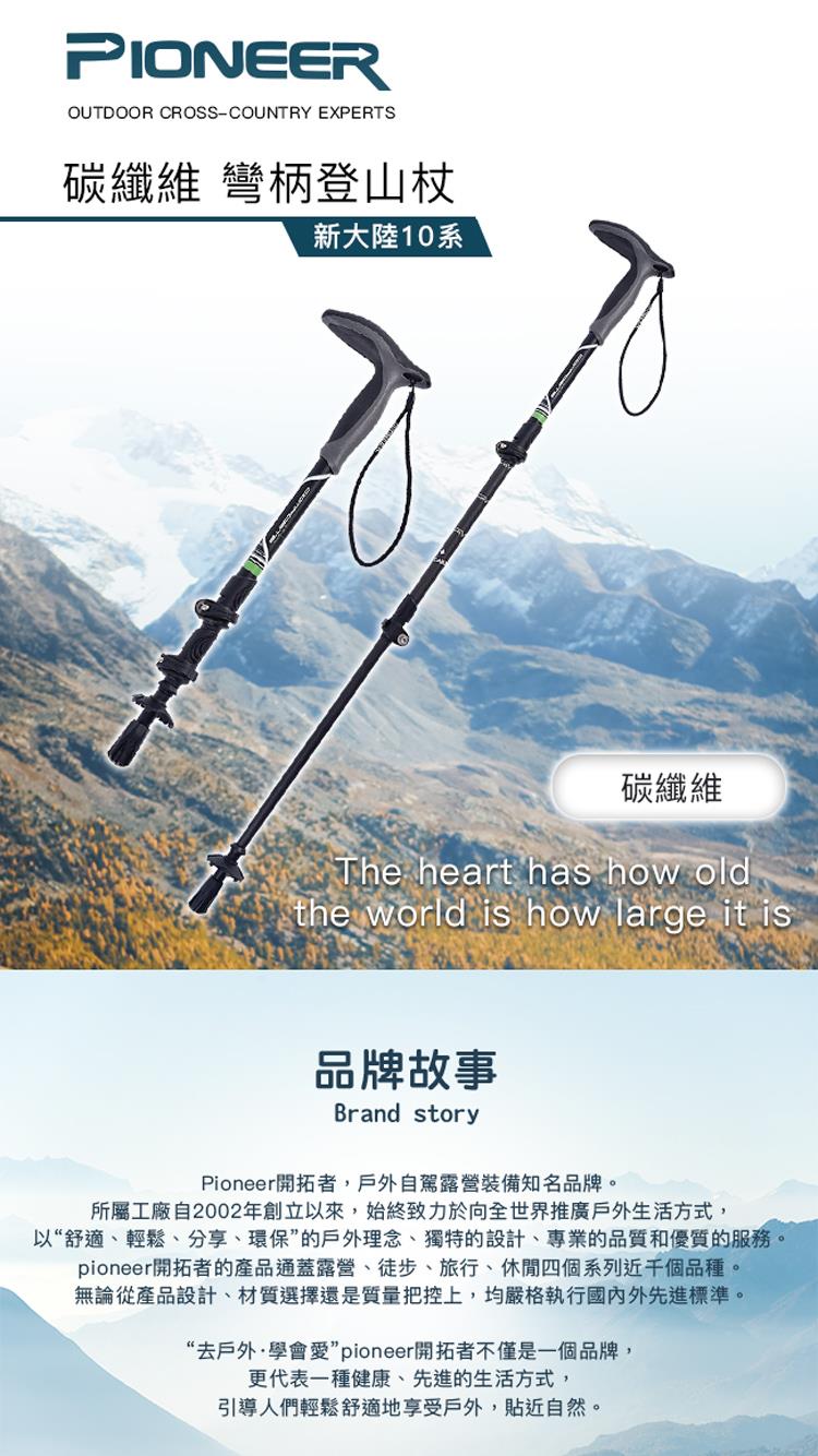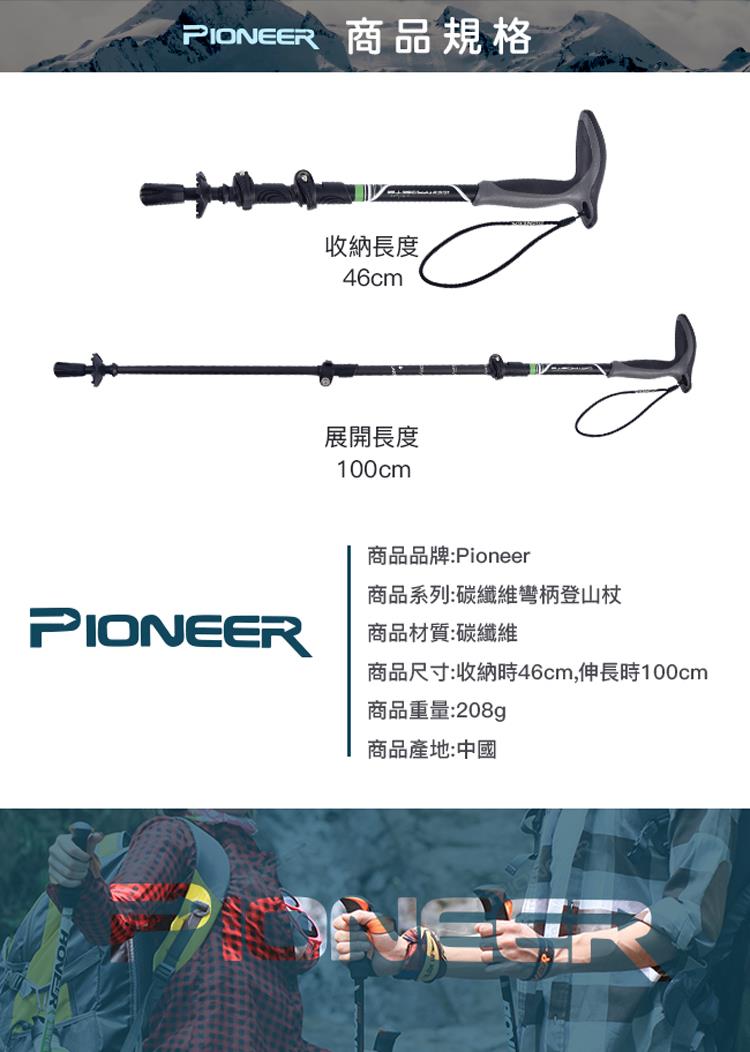 【開拓者 Pioneer】新大陸碳纖維速鎖彎把登山杖(兩色任選)