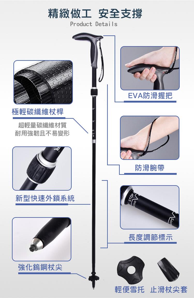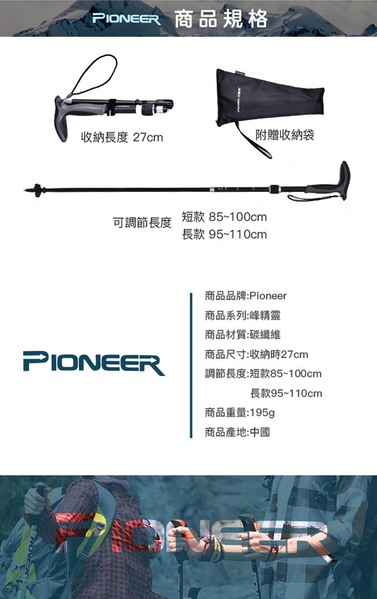 【開拓者 Pioneer】峰精靈碳纖維摺疊彎把登山杖/摺疊登山杖(兩款任選)