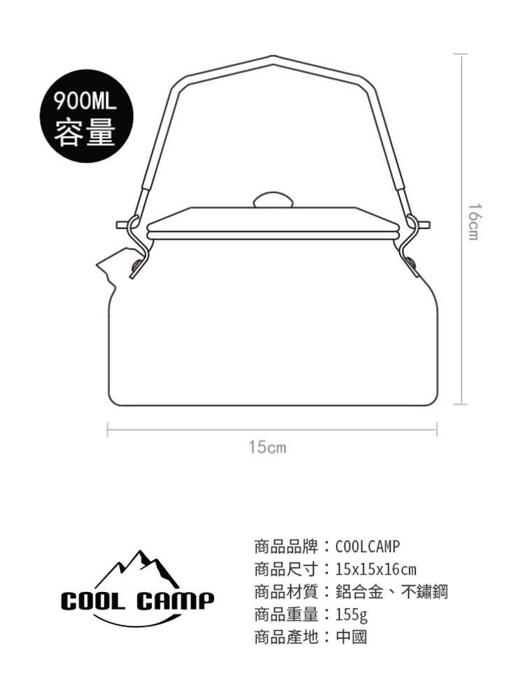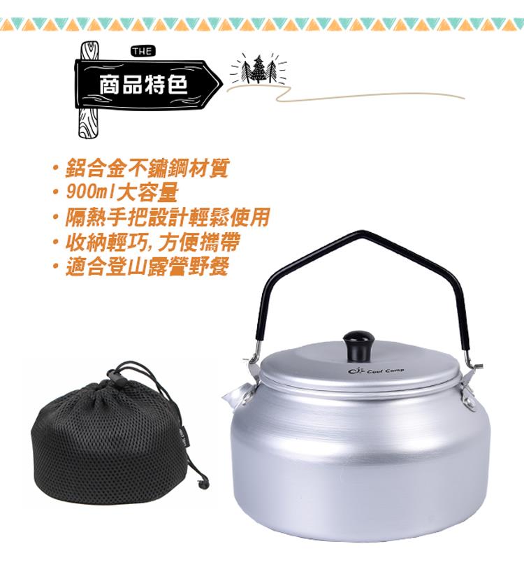 【COOLCAMP】0.9L硬質氧化鋁合金茶壺/茶葉/泡茶/露營/野餐/水壺(三色任選)
