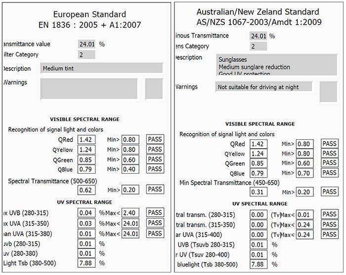 合格標準:國際 ISO 12312-1、台灣標準檢驗局符合 CNS15067 指定代碼 D63924