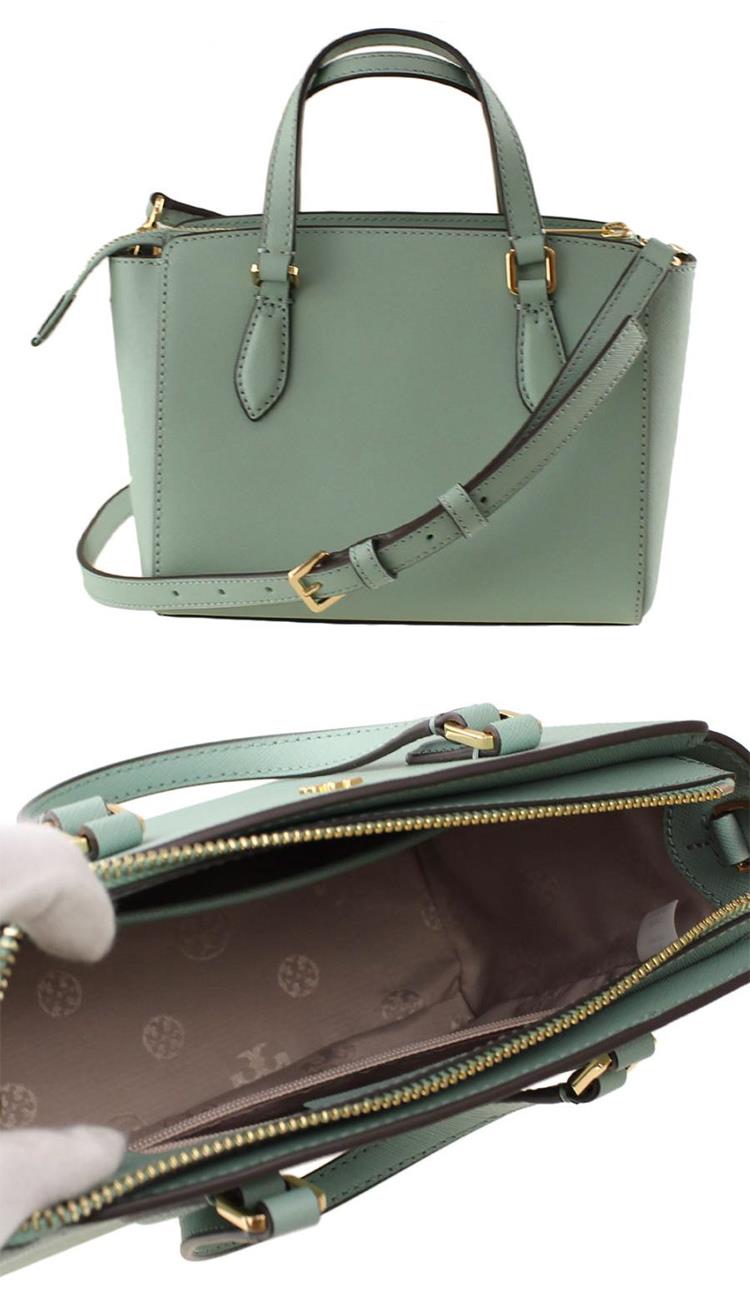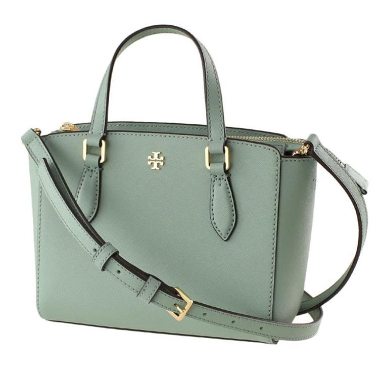 Tory Burch 雙T-LOGO素面皮革兩用包-湖水綠
