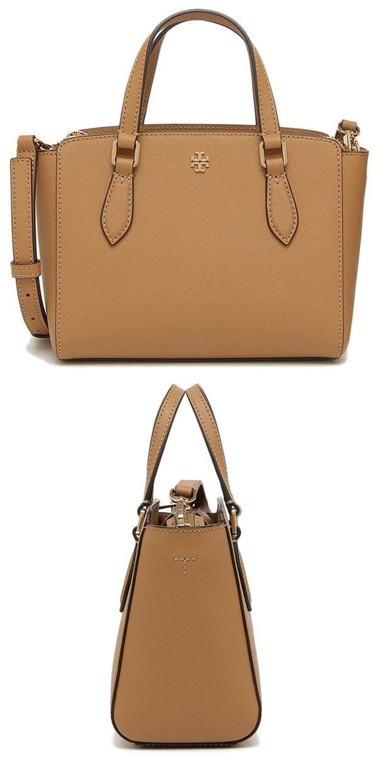 Tory Burch 雙T-LOGO素面皮革兩用包-焦糖