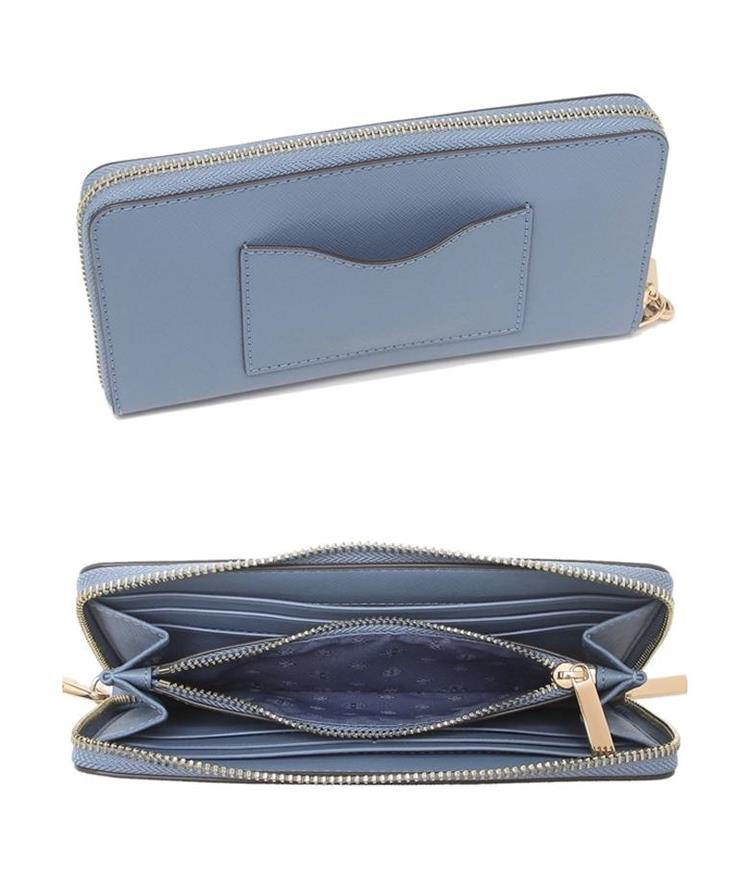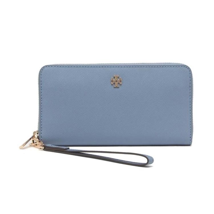 Tory Burch 雙T-LOGO素面皮革長夾-水藍