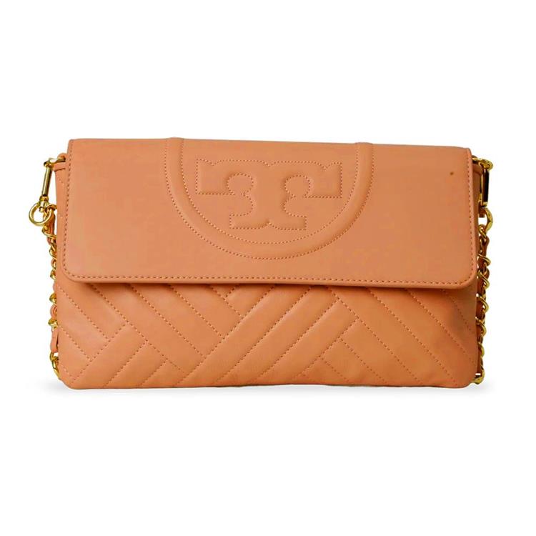 Tory Burch 質感皮革造型翻蓋鍊包-駝桔