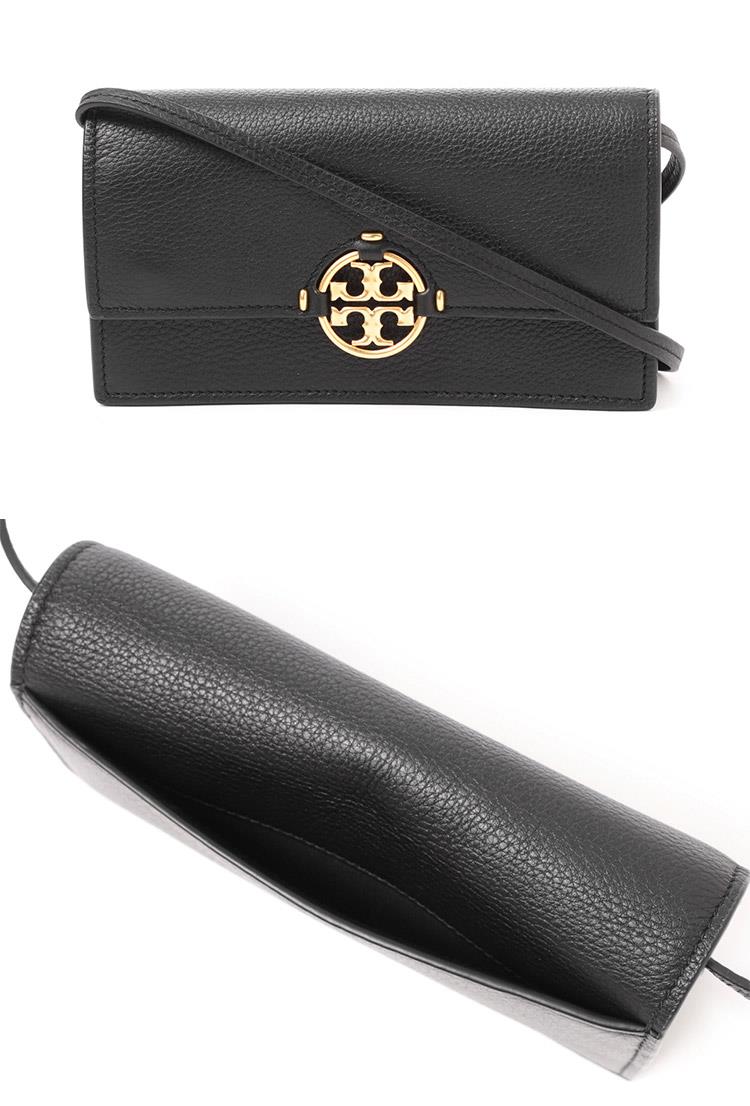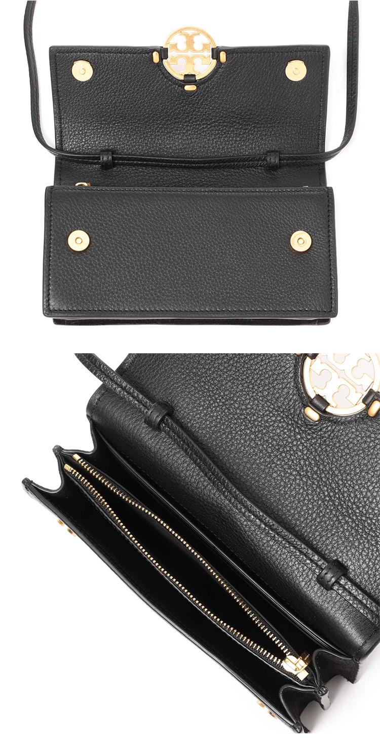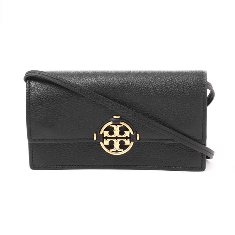 Tory Burch 素面皮革翻蓋斜背包-黑
