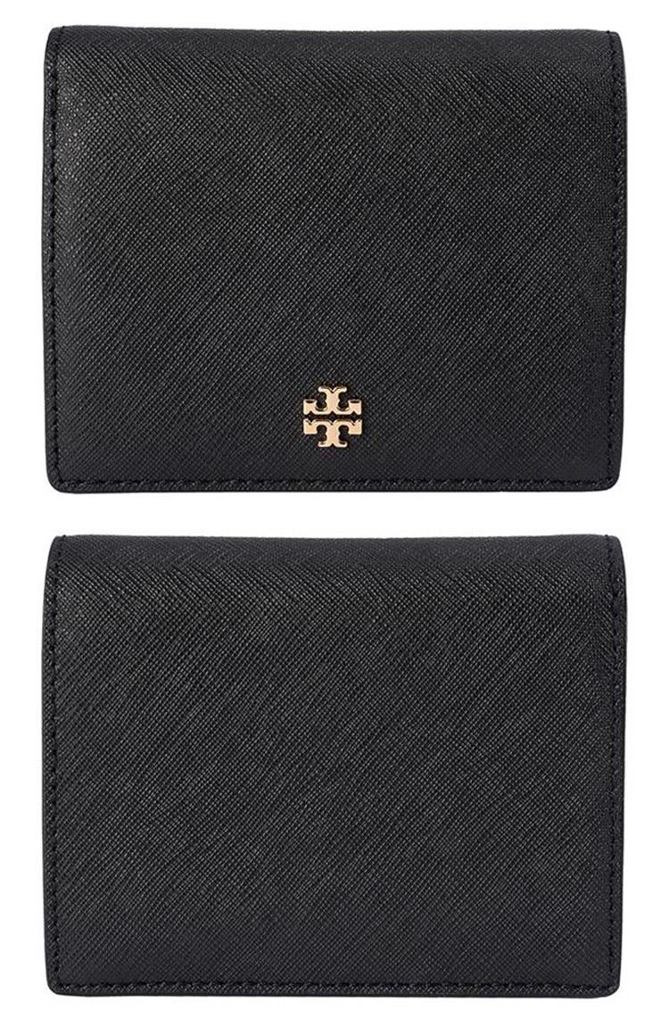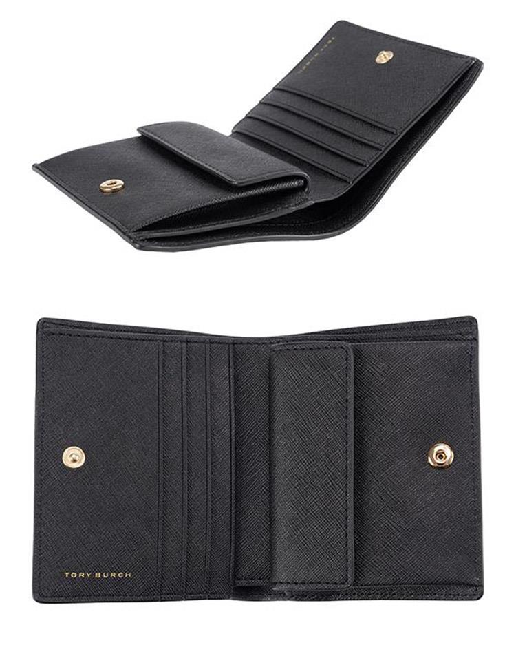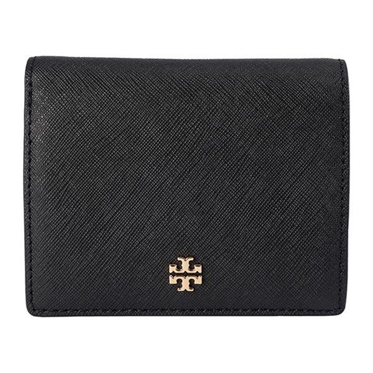 Tory Burch 雙T-LOGO素面皮革短夾-黑
