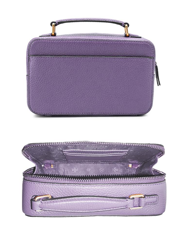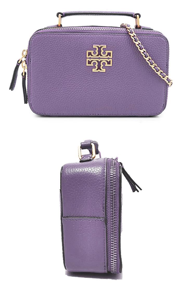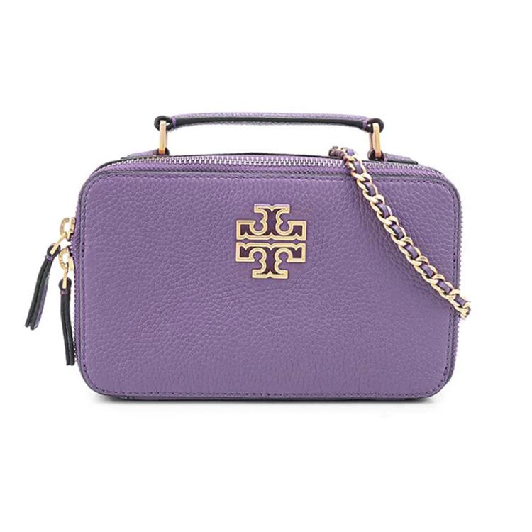 TORY BURCH 雙T-LOGO素面皮革手提兩用鍊包-紫