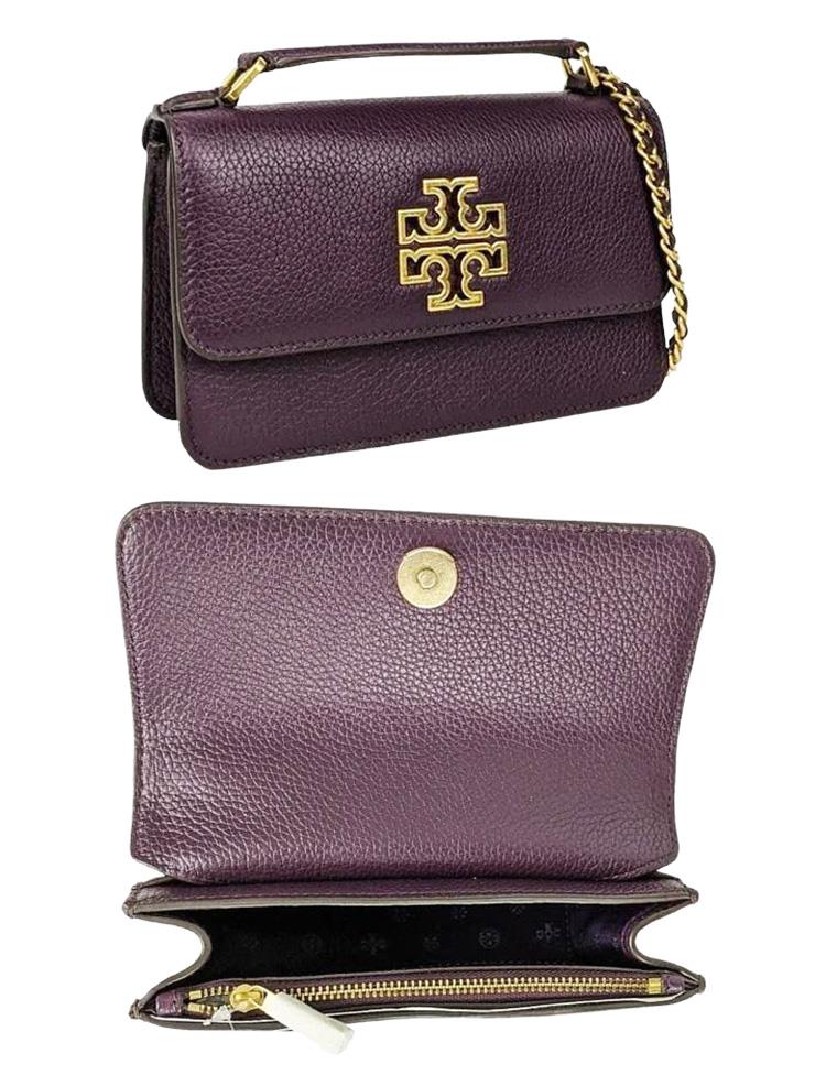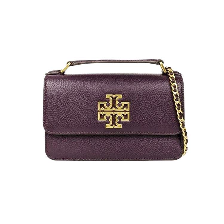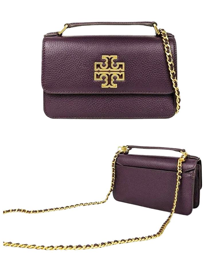 TORY BURCH 雙T-LOGO皮革翻蓋兩用鍊包-葡萄深紫
