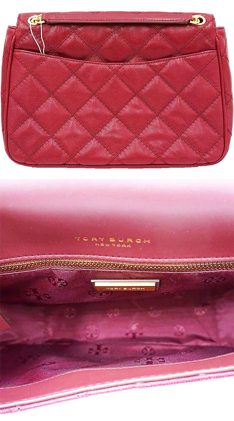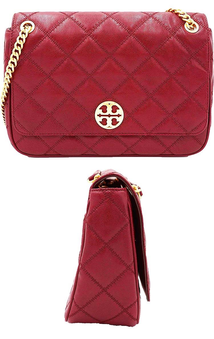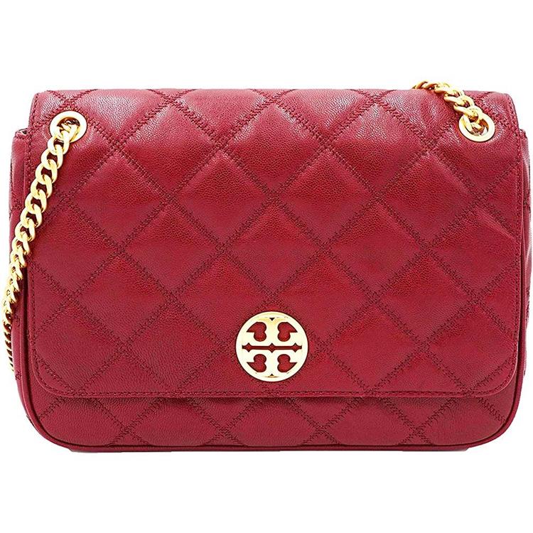 TORY BURCH 菱格紋皮革翻蓋斜背鍊包