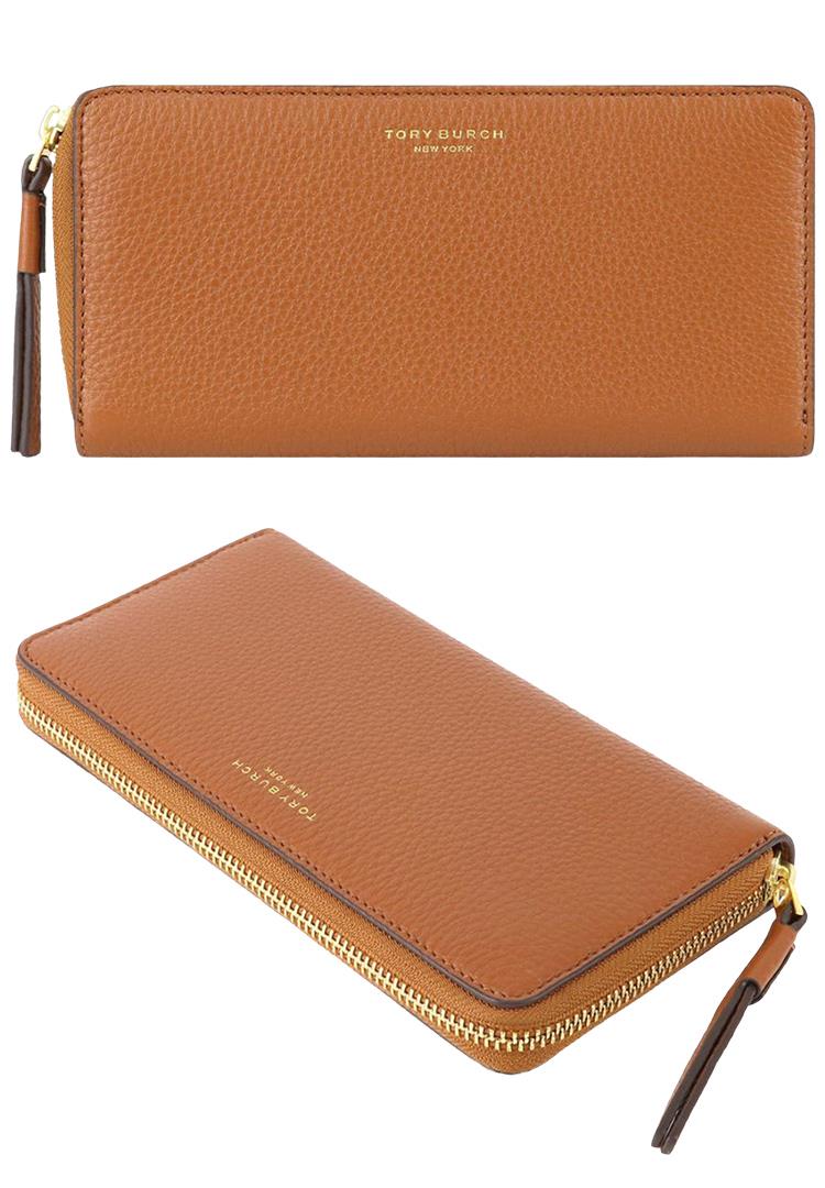 TORY BURCH 素面皮革拉鍊長夾-焦糖