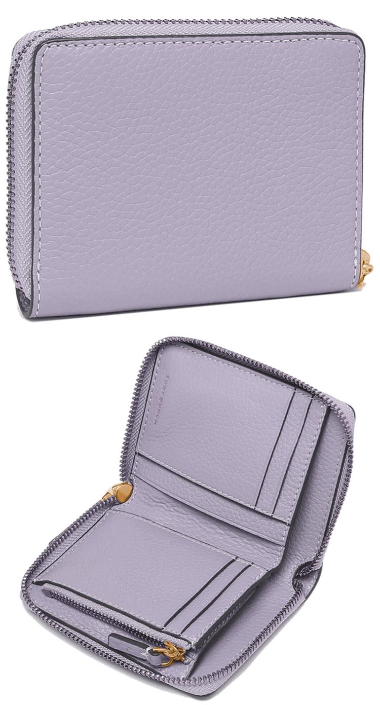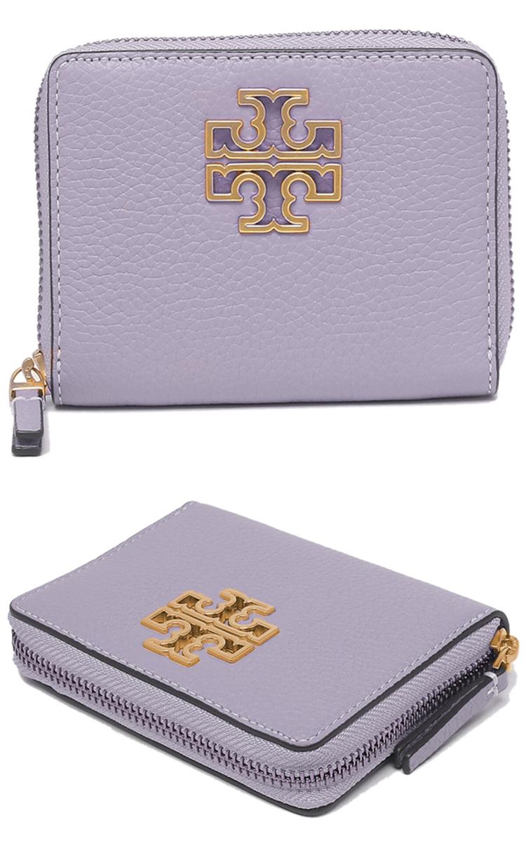TORY BURCH 雙T-LOGO素面拉鍊短夾-紫色