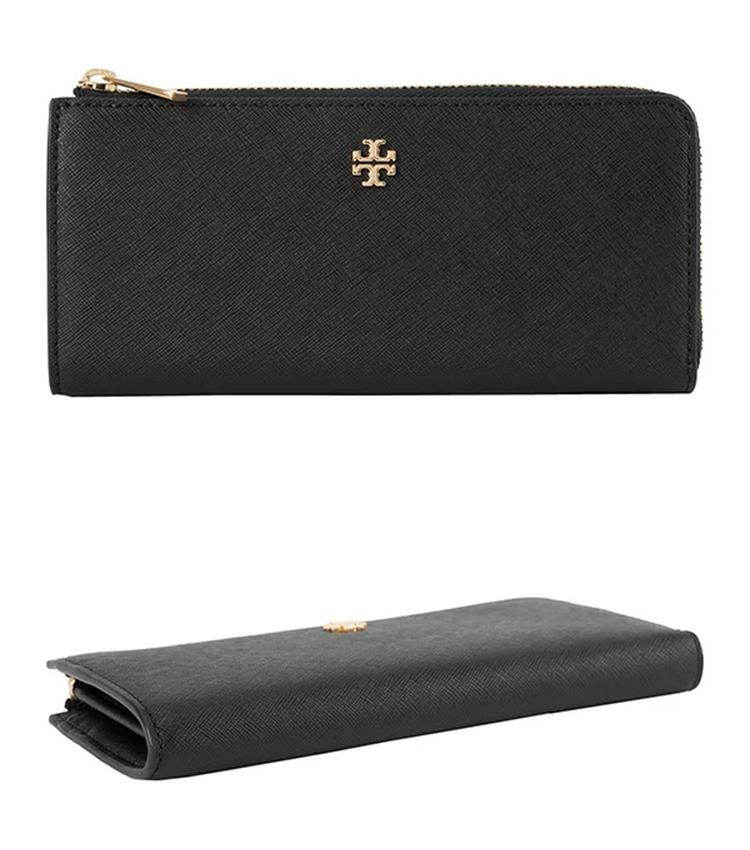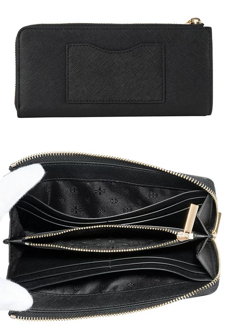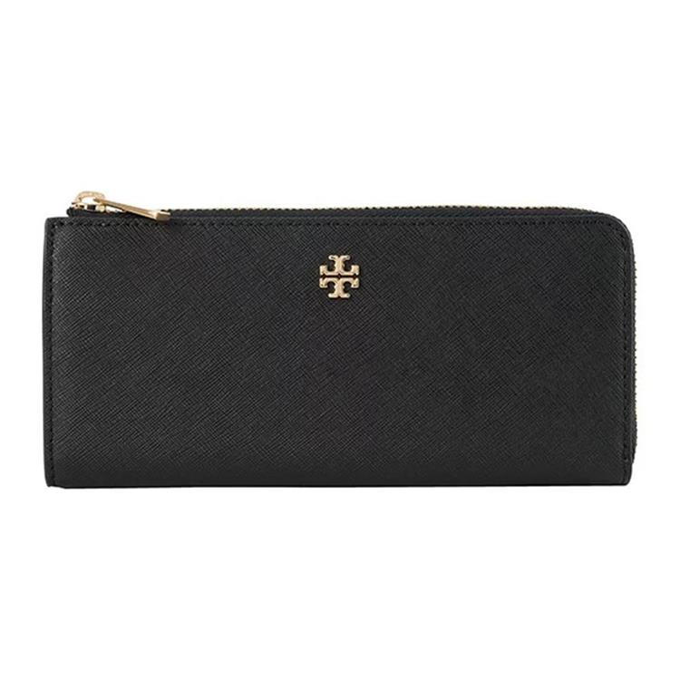 TORY BURCH 雙T-LOGO素面拉鍊長夾-黑