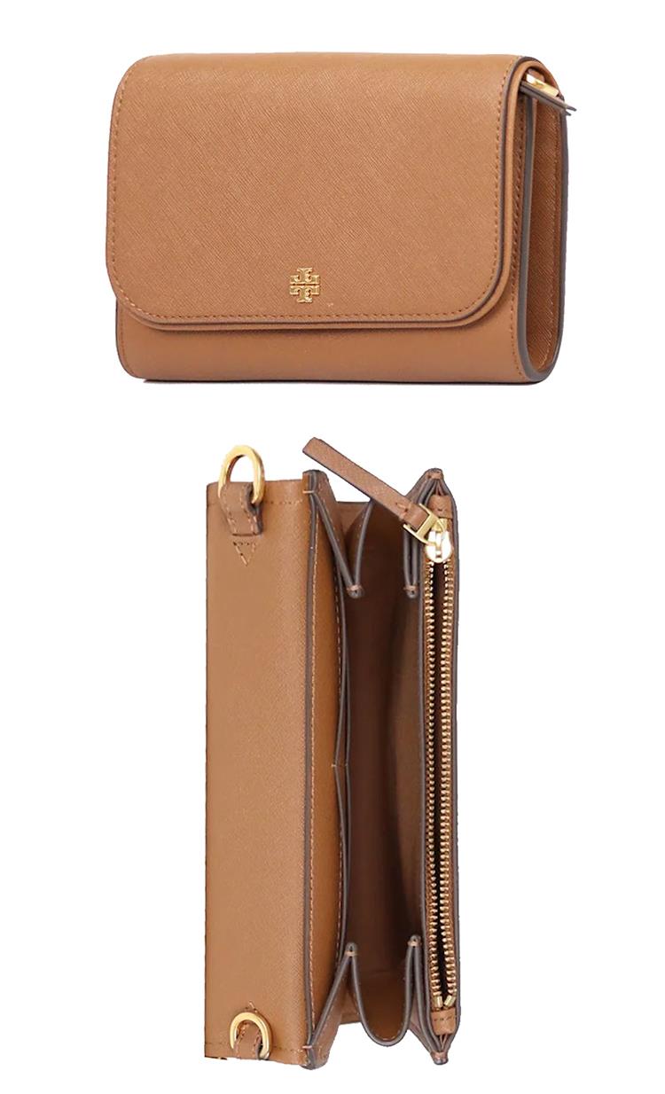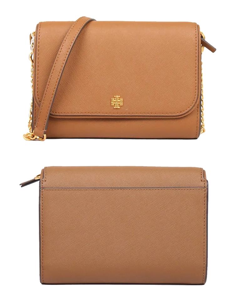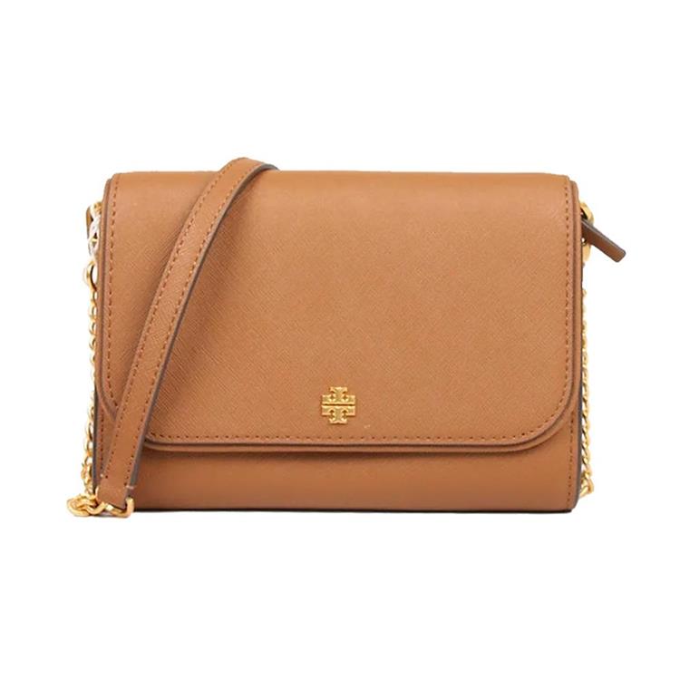 TORY BURCH 素面皮革斜背鍊包-焦糖