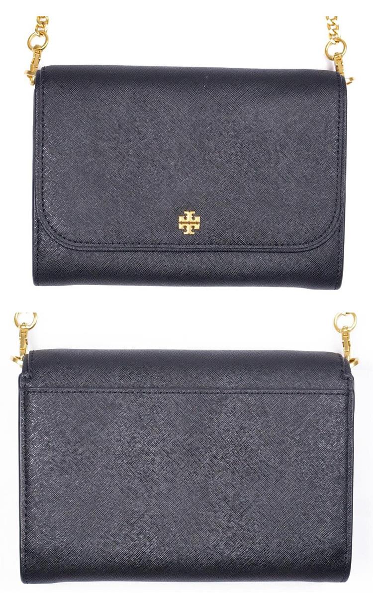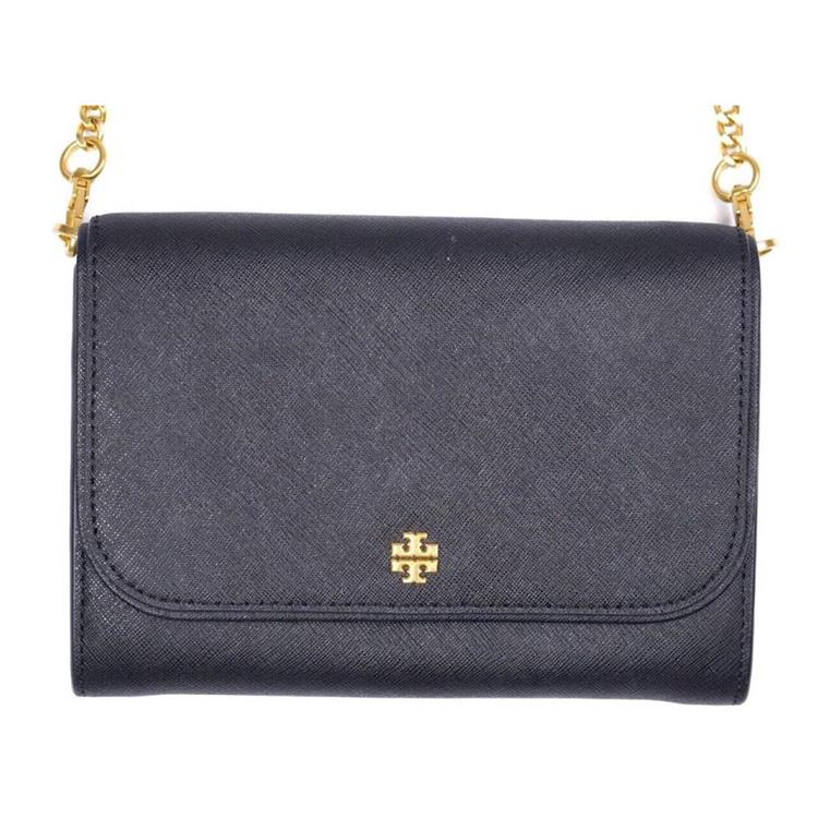 TORY BURCH 素面皮革斜背鍊包-黑色