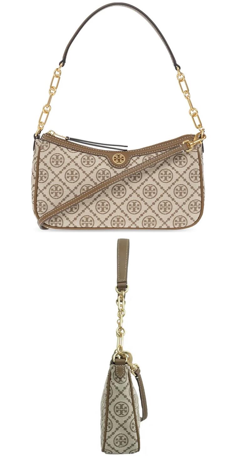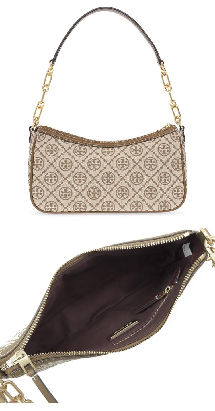 TORY BURCH 滿版logo提花織布單肩包-卡其