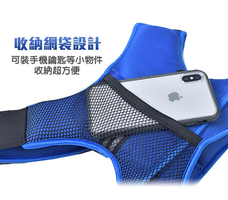 隱形貼身設計運動不設限 收納網袋可放置各式物品 透氣排汗材質觸感舒適