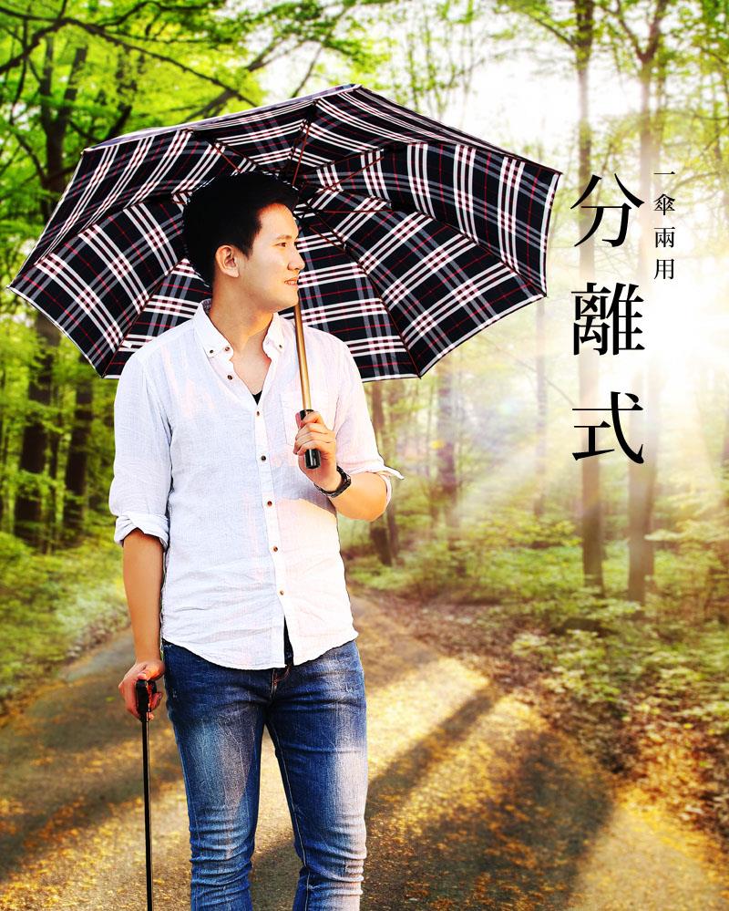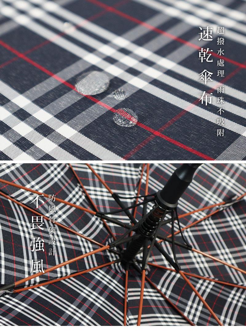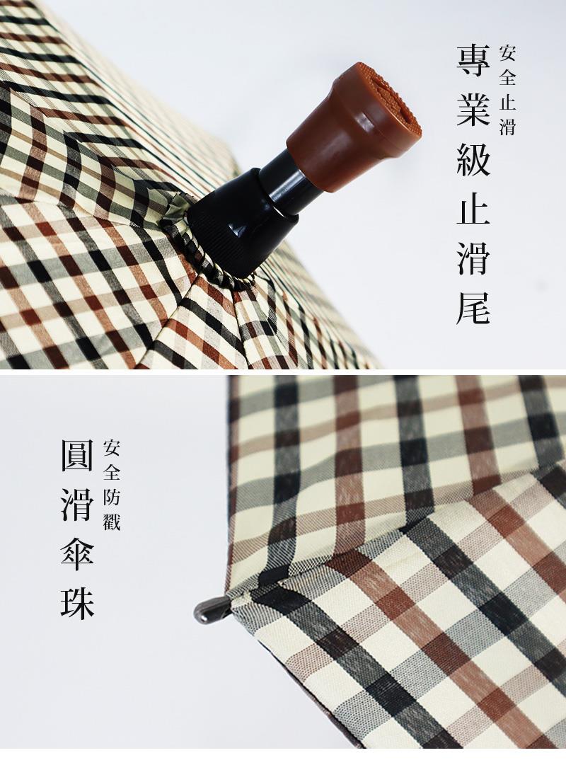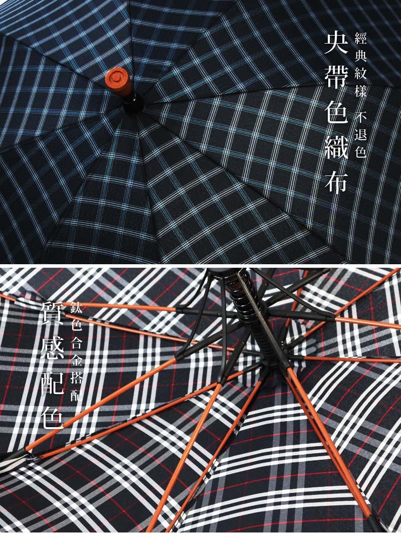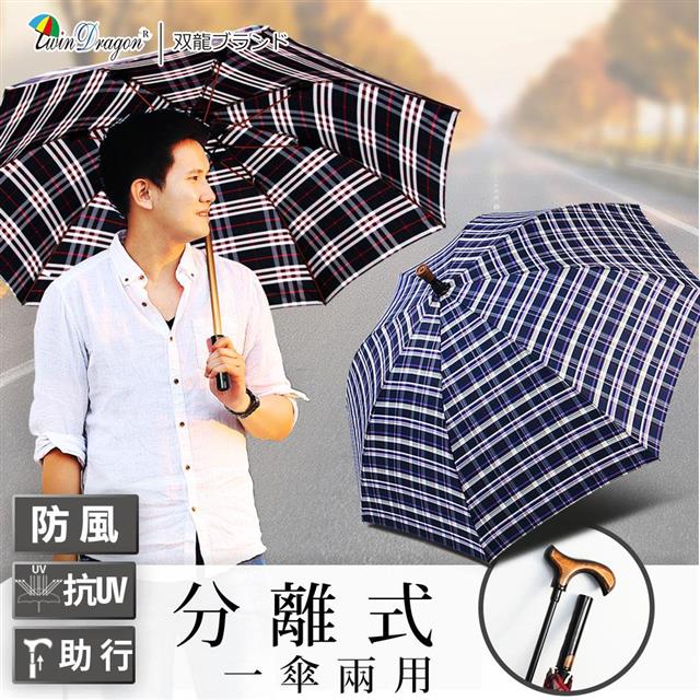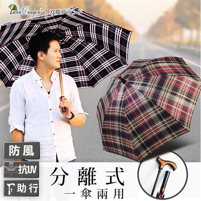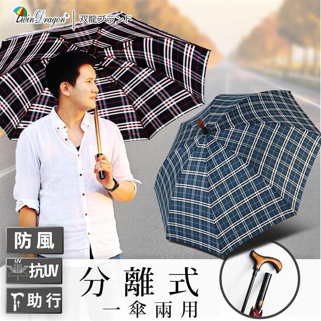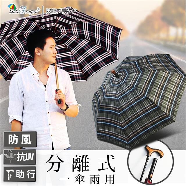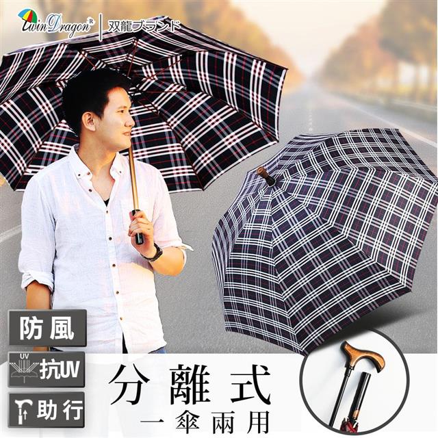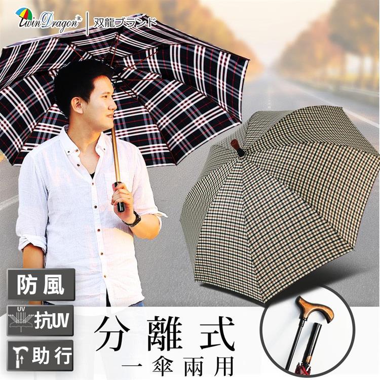 【雙龍牌】英國紳士央帶格紋分離式自動開直立傘/雙中棒休閒助行登山健走玻璃纖維防風防曬A6184