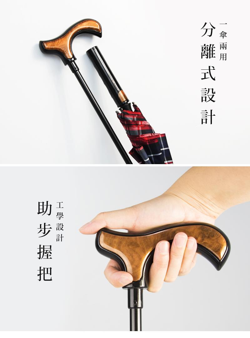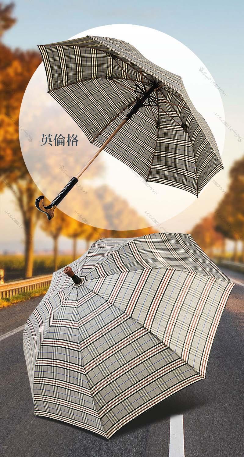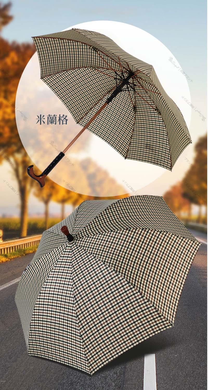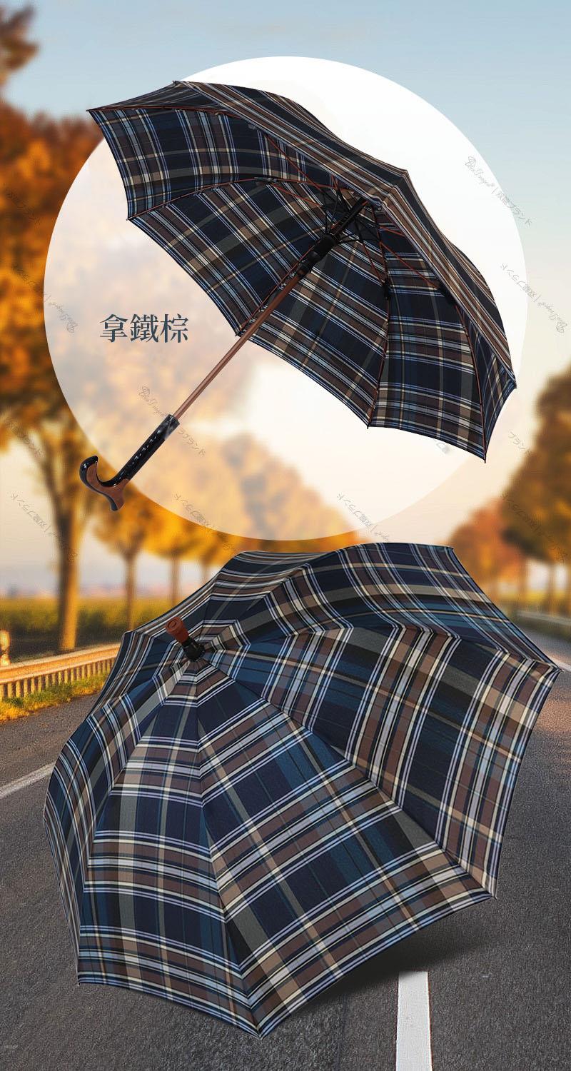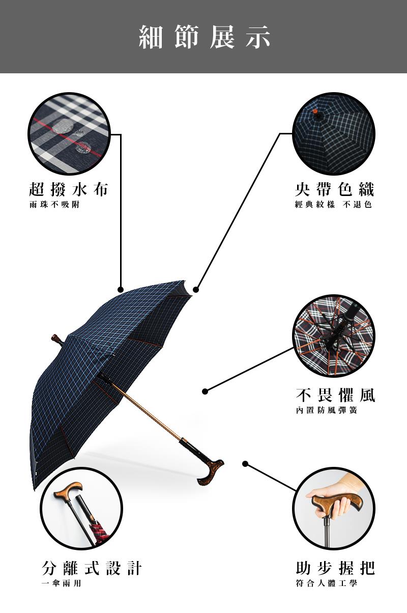 【雙龍牌】英國紳士央帶格紋分離式自動開直立傘/雙中棒休閒助行登山健走玻璃纖維防風防曬A6184