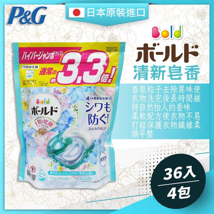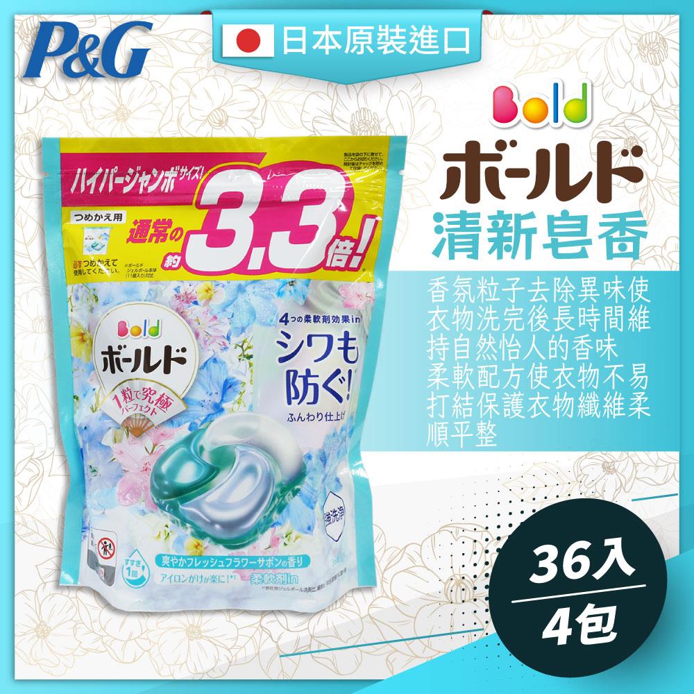 日本P&G Ariel/Bold 新款3.3倍洗衣膠球(36顆/袋)(淺藍)-4袋組
