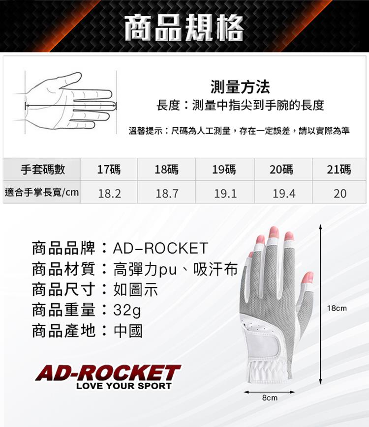 【AD-ROCKET】高爾夫 極致透氣女士露指透氣手套 灰色 左右手各一 /高爾夫手套/高球手套