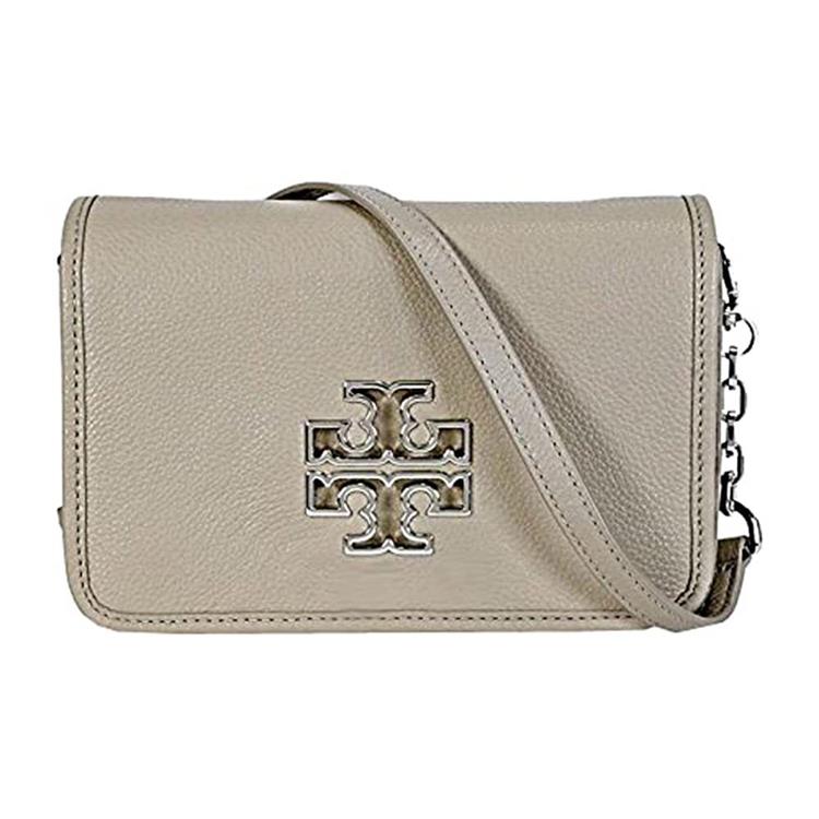 TORY BURCH 雙T LOGO皮革手拿包-米白色