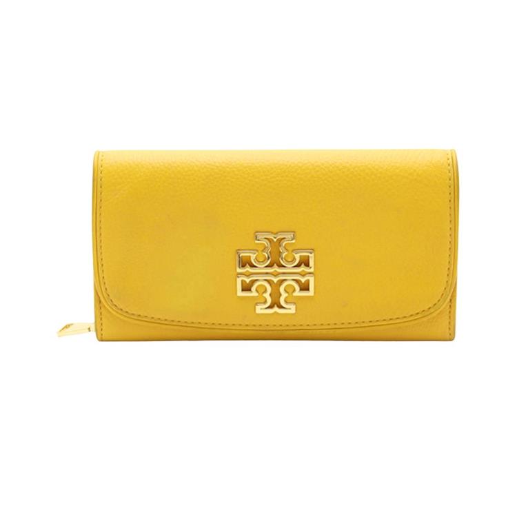 TORY BURCH 雙T LOGO皮革翻蓋長夾-黃