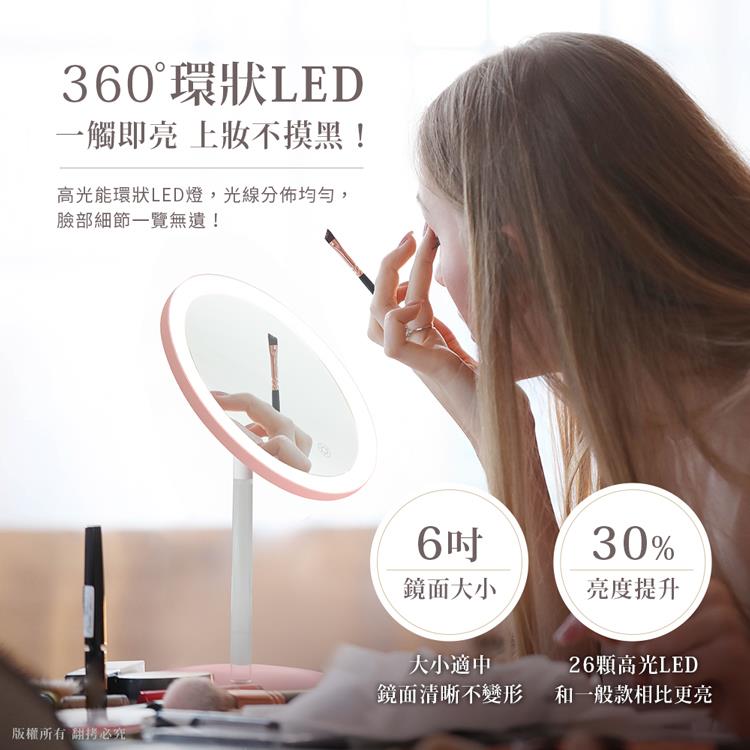 6吋大小適中鏡面,清晰映照不變形,搭配高亮度360°環狀LED,